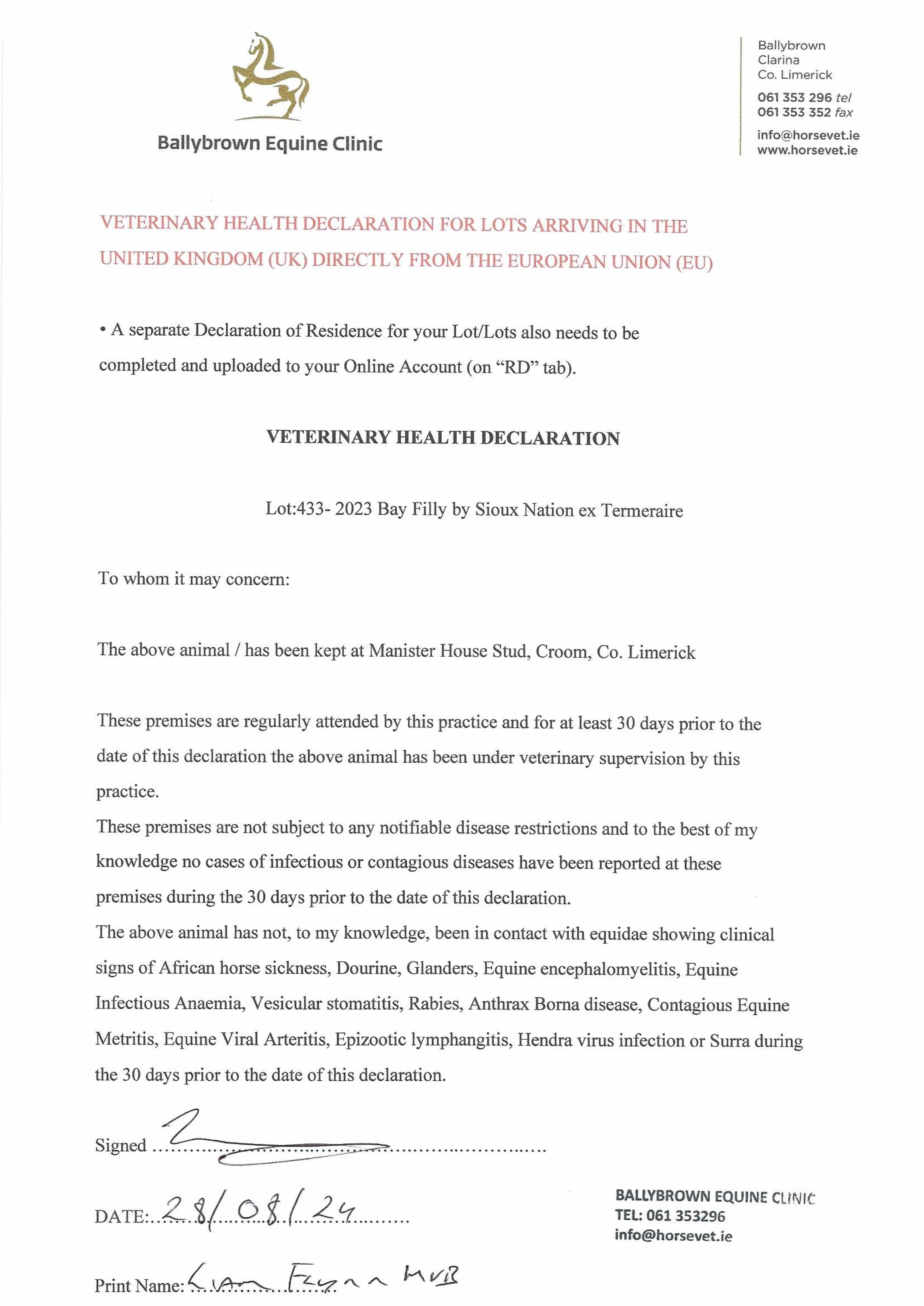 Consignor: Manister House Stud, Ireland