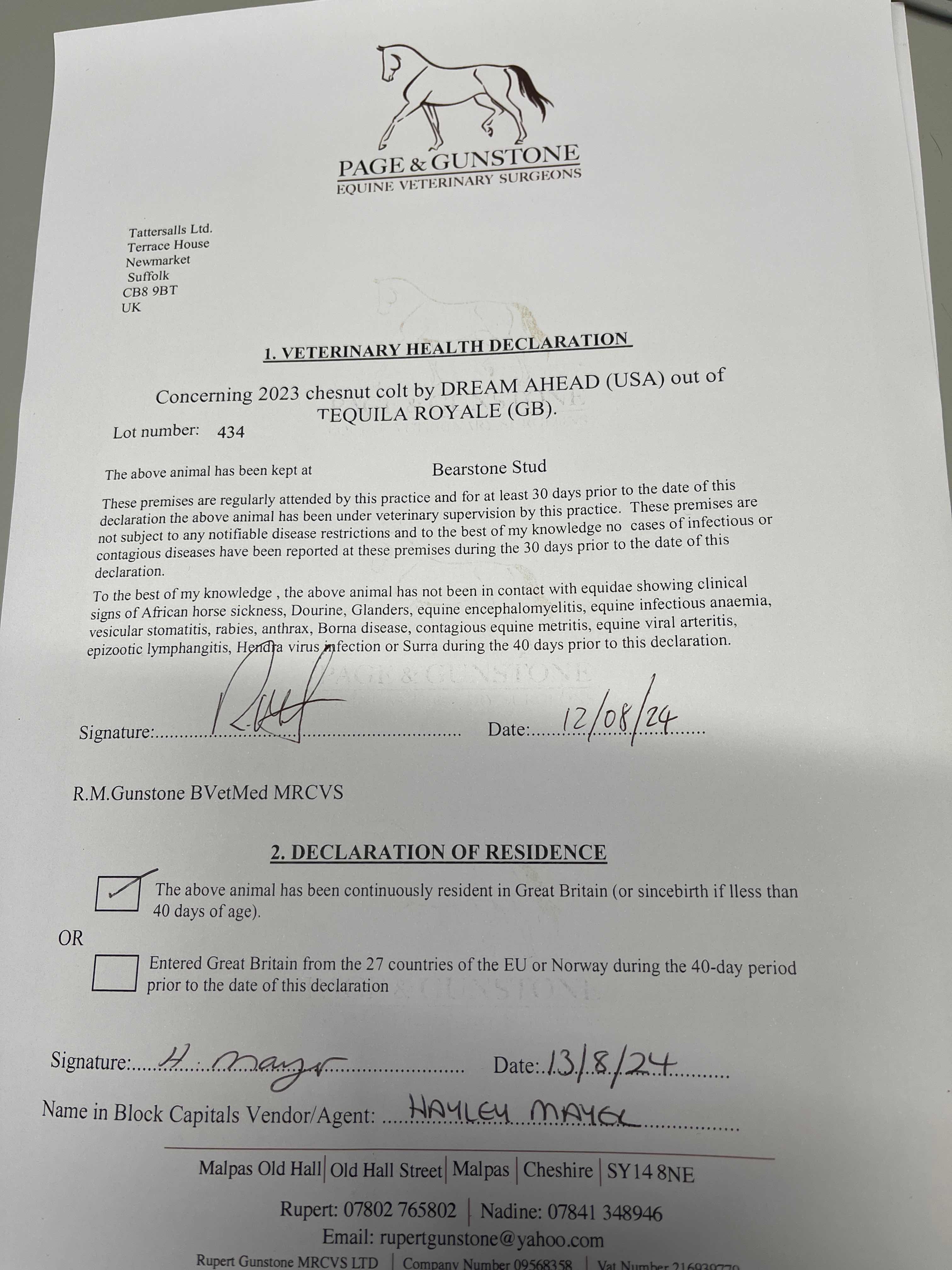 Online Sale - 19th November 2025 lot 49 F. 2024, Bearstone Stud=>Lot Not Sold 900 gns
