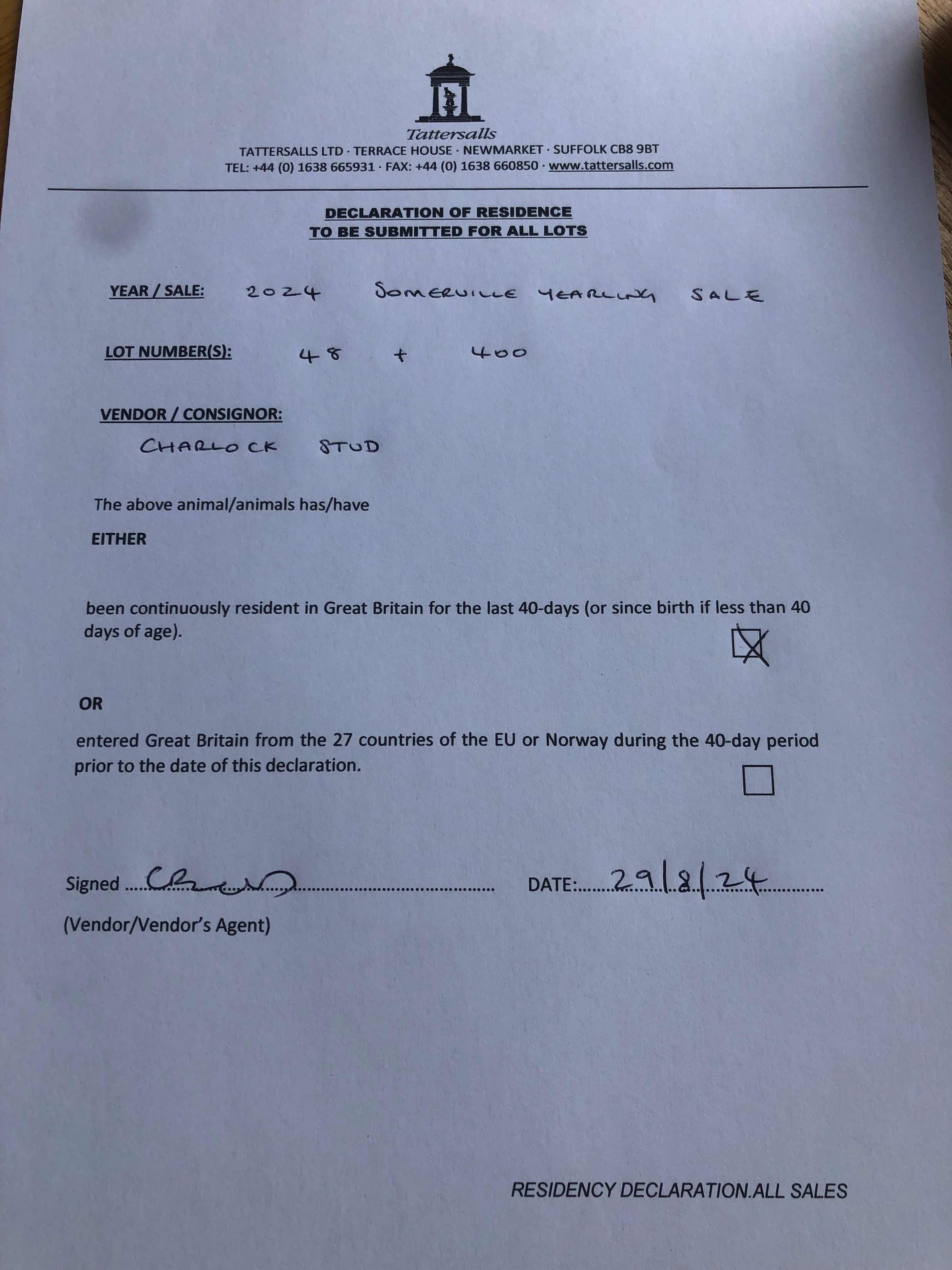 Consignor: Charlock Stud