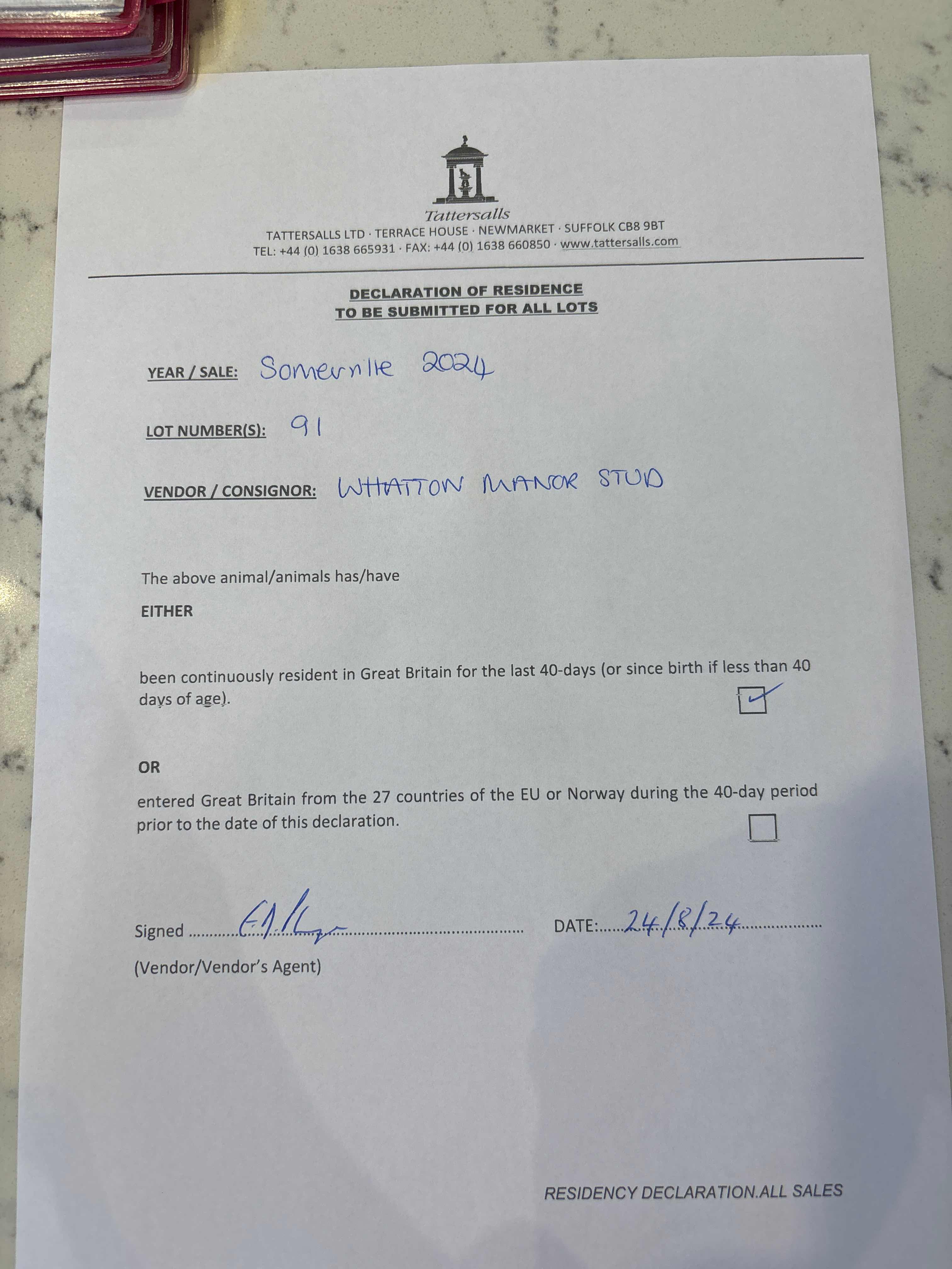 Consignor: Whatton Manor Stud