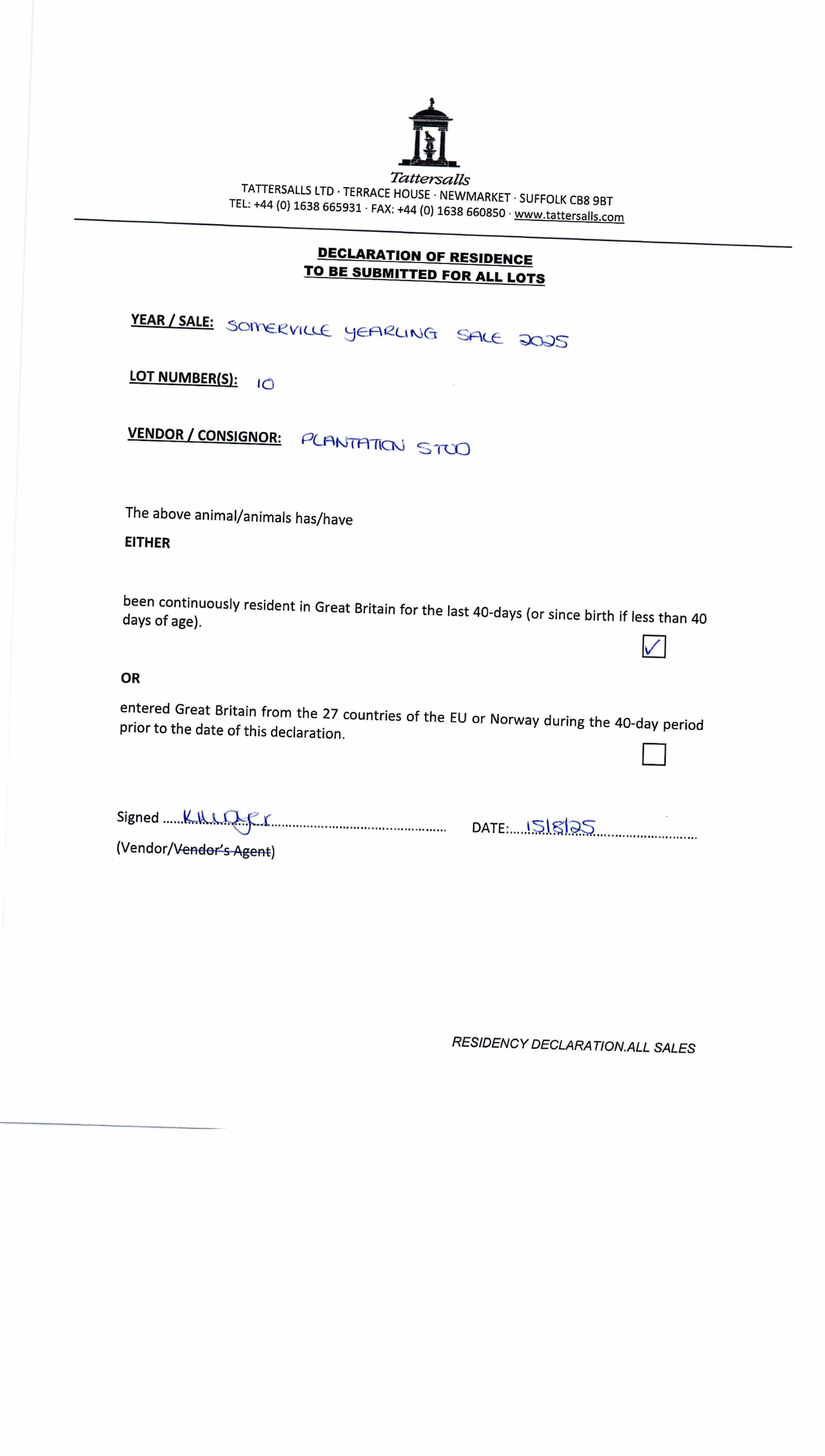 Consignor: Plantation Stud