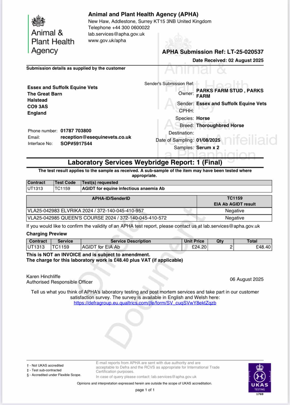 Official Veterinarian Declaration