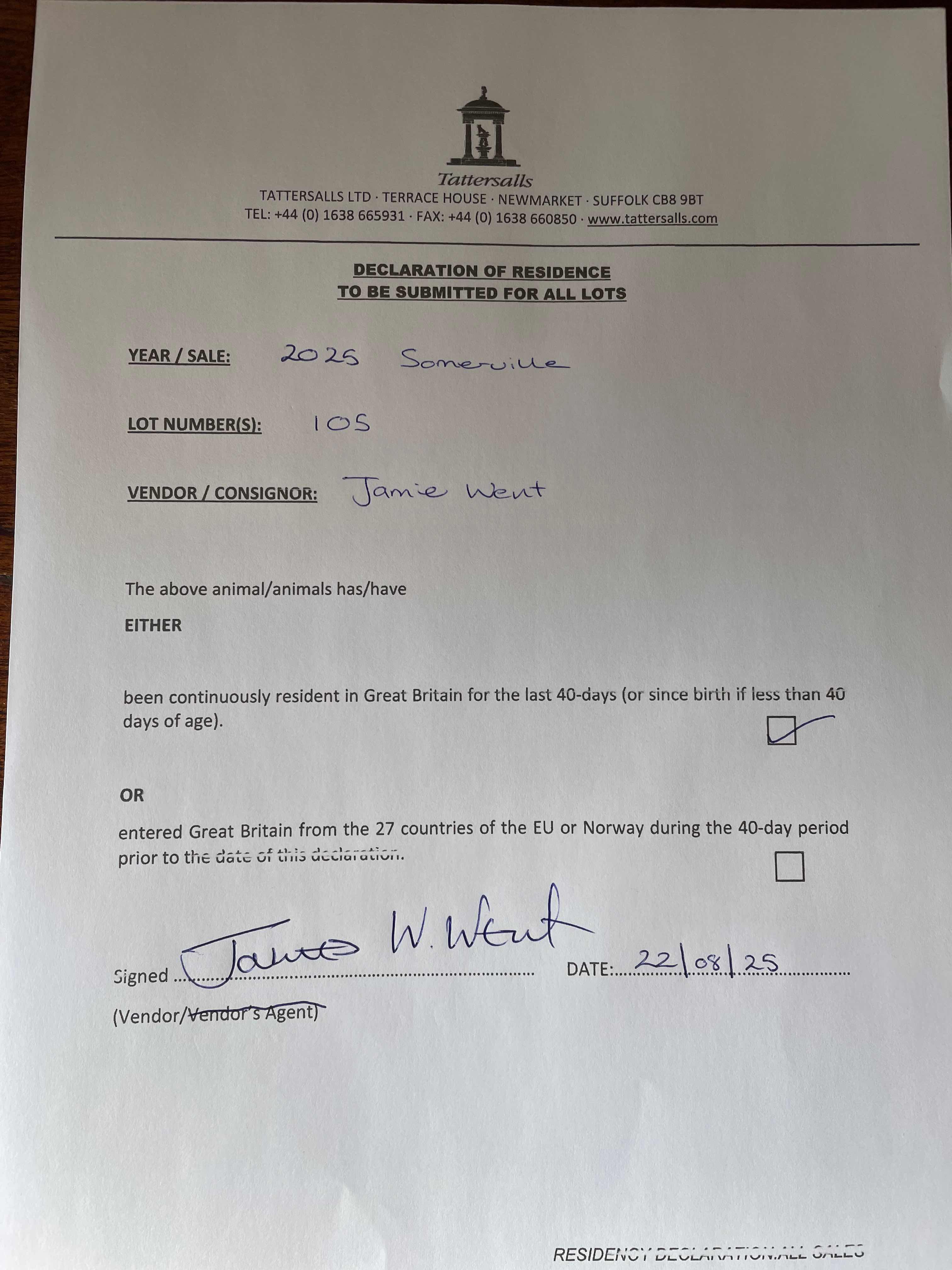 Will Douglass Bloodstock / C Fellowes