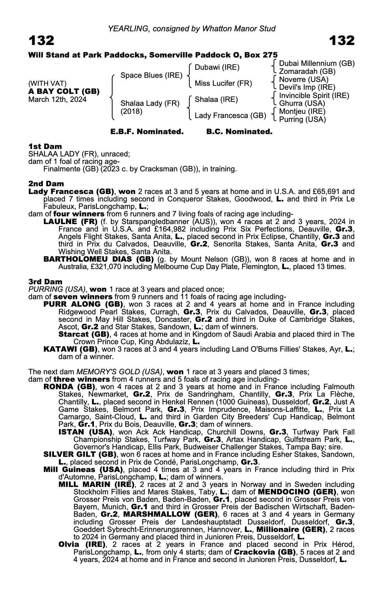 Consignor: Whatton Manor Stud