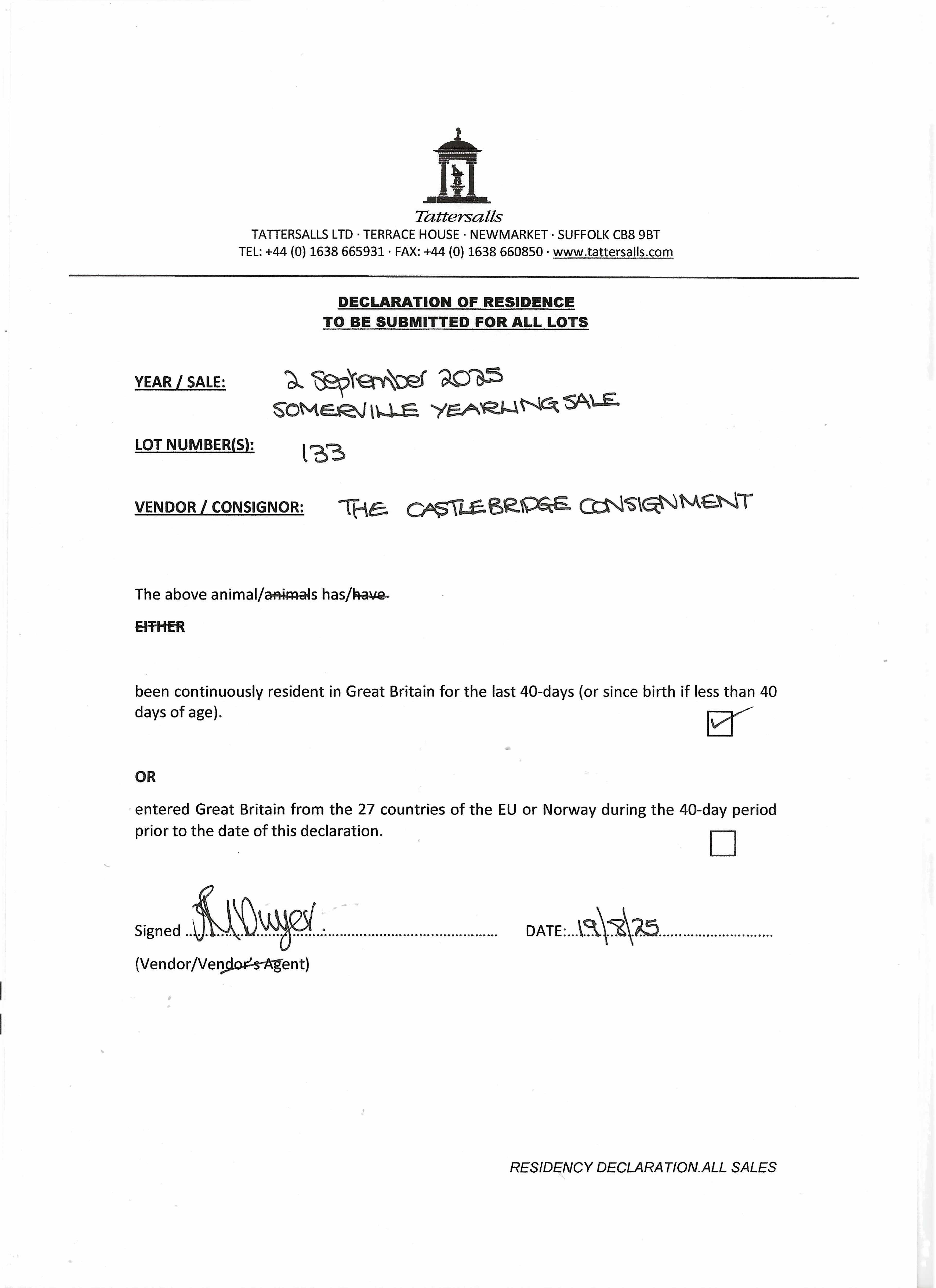 Somerville Yearling Sale 2024 lot 384 C. by Territories (IRE) 2023, Knockatrina House, Ireland=>Vendor 15,000 gns
