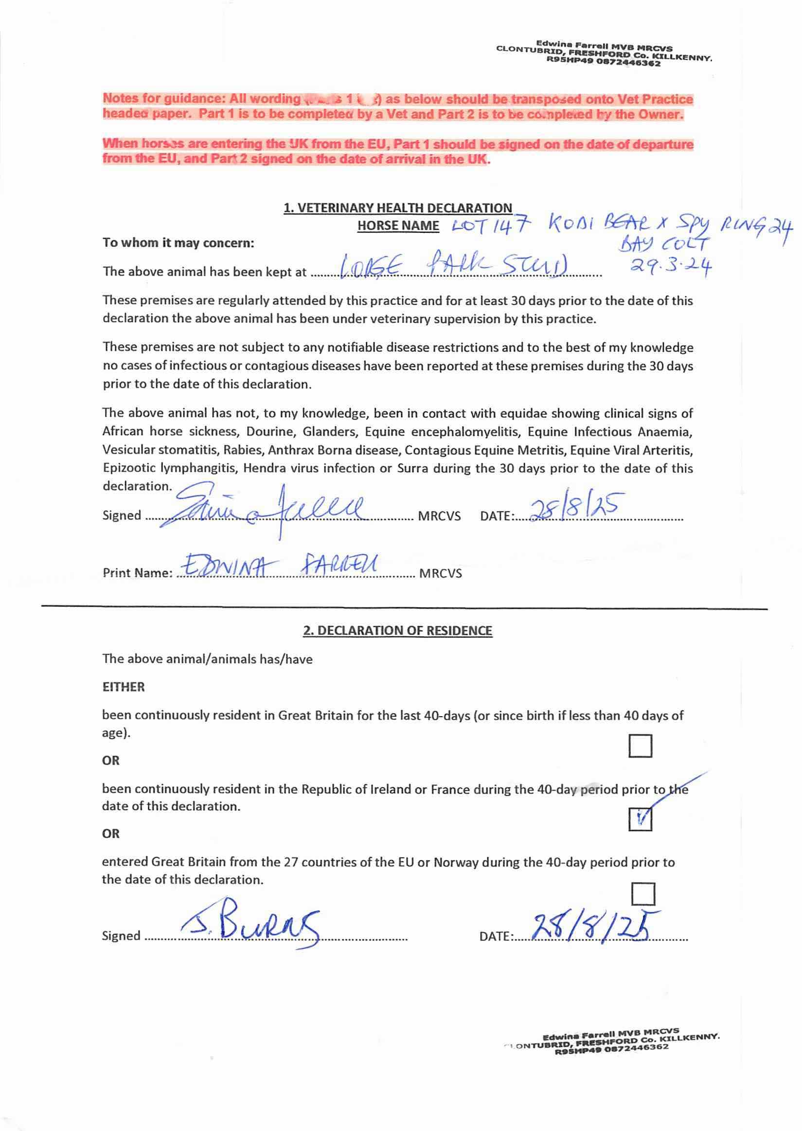 Somerville Yearling Sale 2024 lot 414 C. by Coulsty (IRE) 2023, Lodge Park Stud, Ireland=>Dwayne Woods 40,000 gns