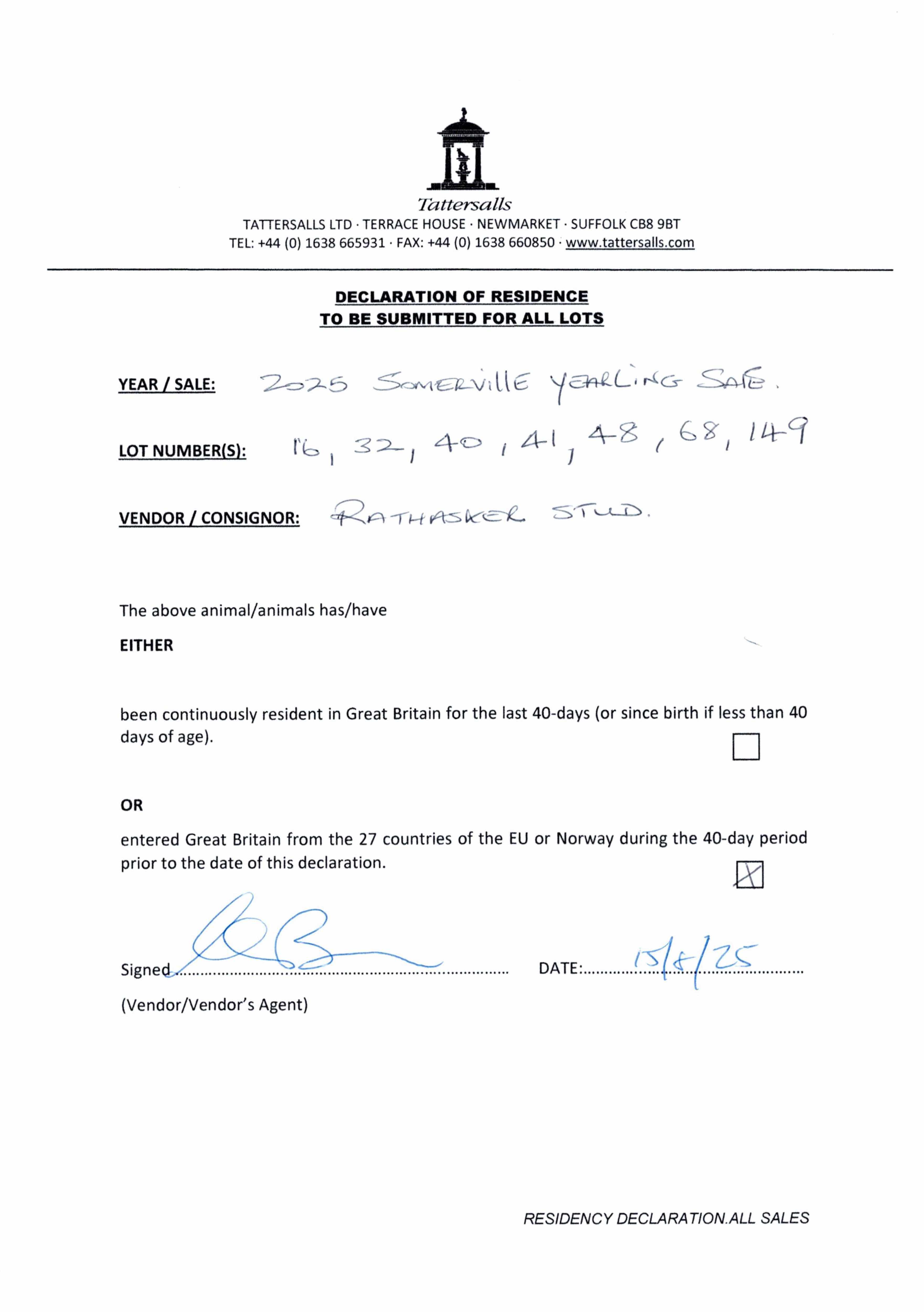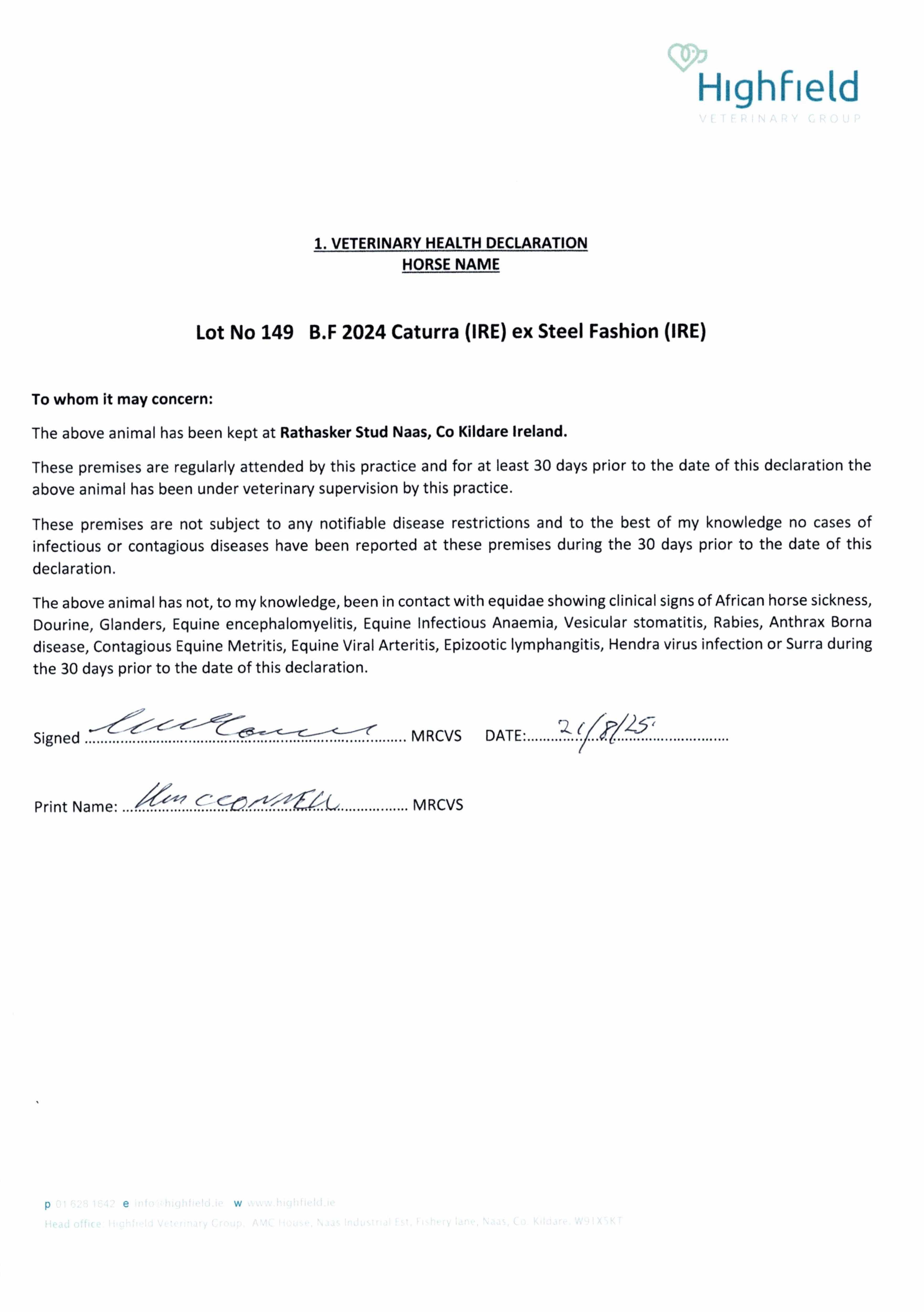 Consignor: Rathasker Stud, Ireland