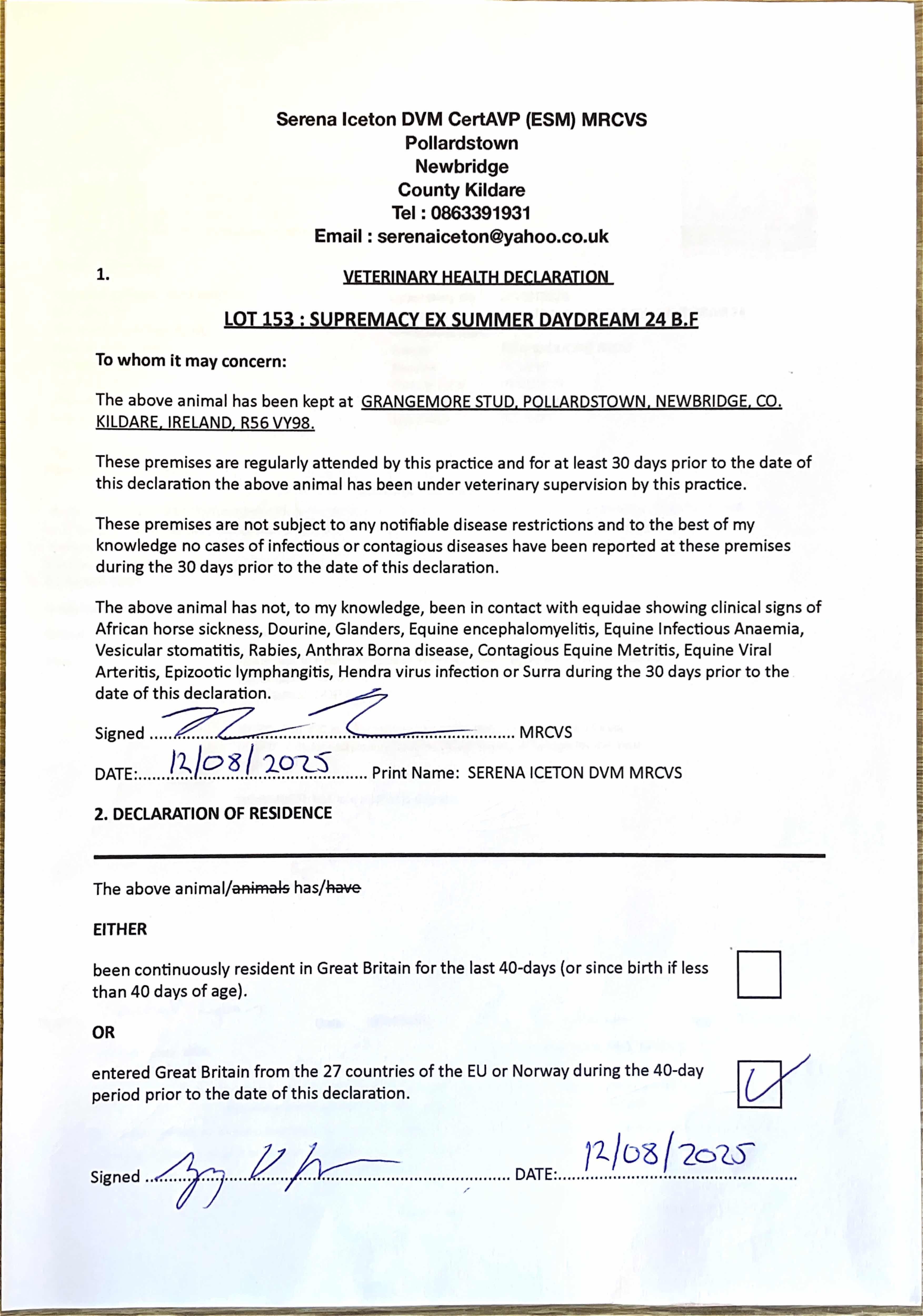 Online Sale - 19th November 2025 lot 137 Variance (IRE) (G. by Dark Angel (IRE)), C. F. Bloodstock, Ireland=>Lot Not Sold 900 gns