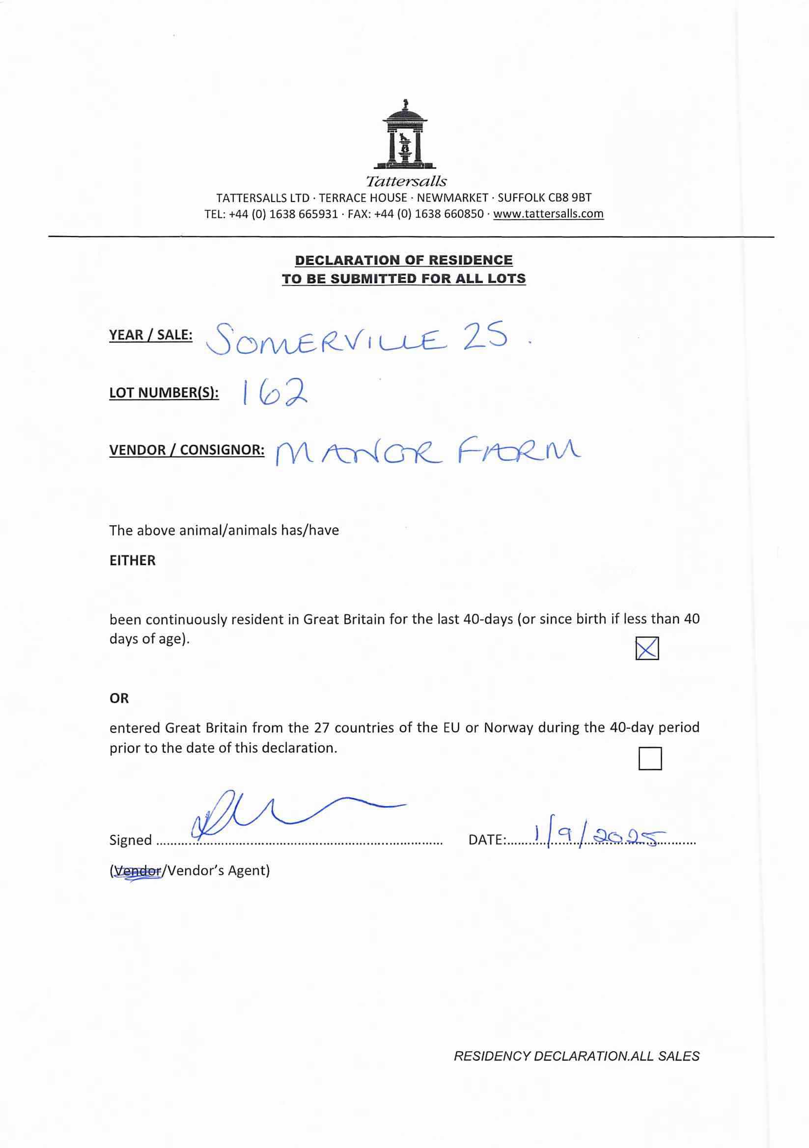 Consignor: Manor Farm (Gloucestershire)