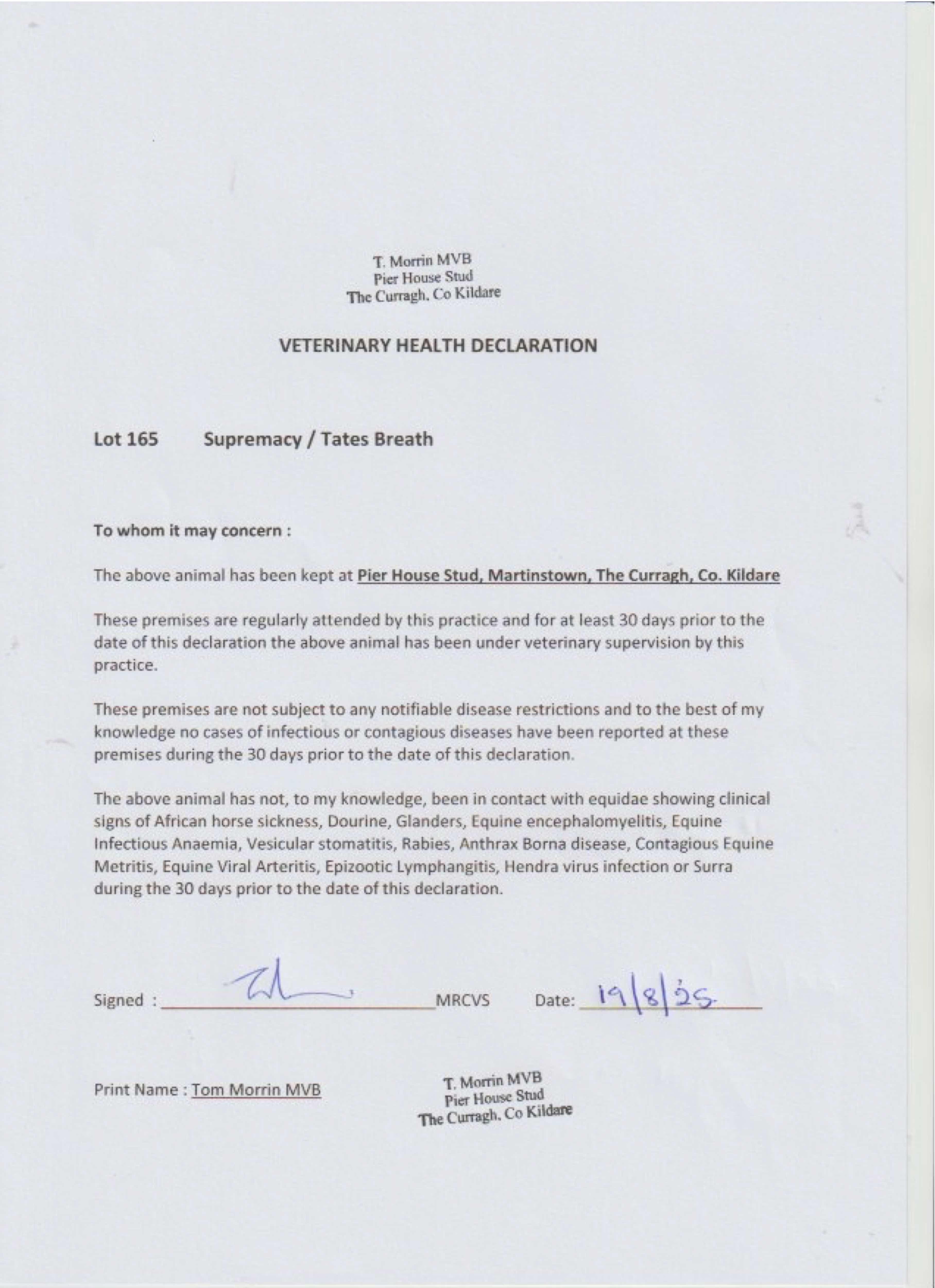 Lot 165 Supremacy (IRE) /Tates Breath (GB) B.C. (IRE)