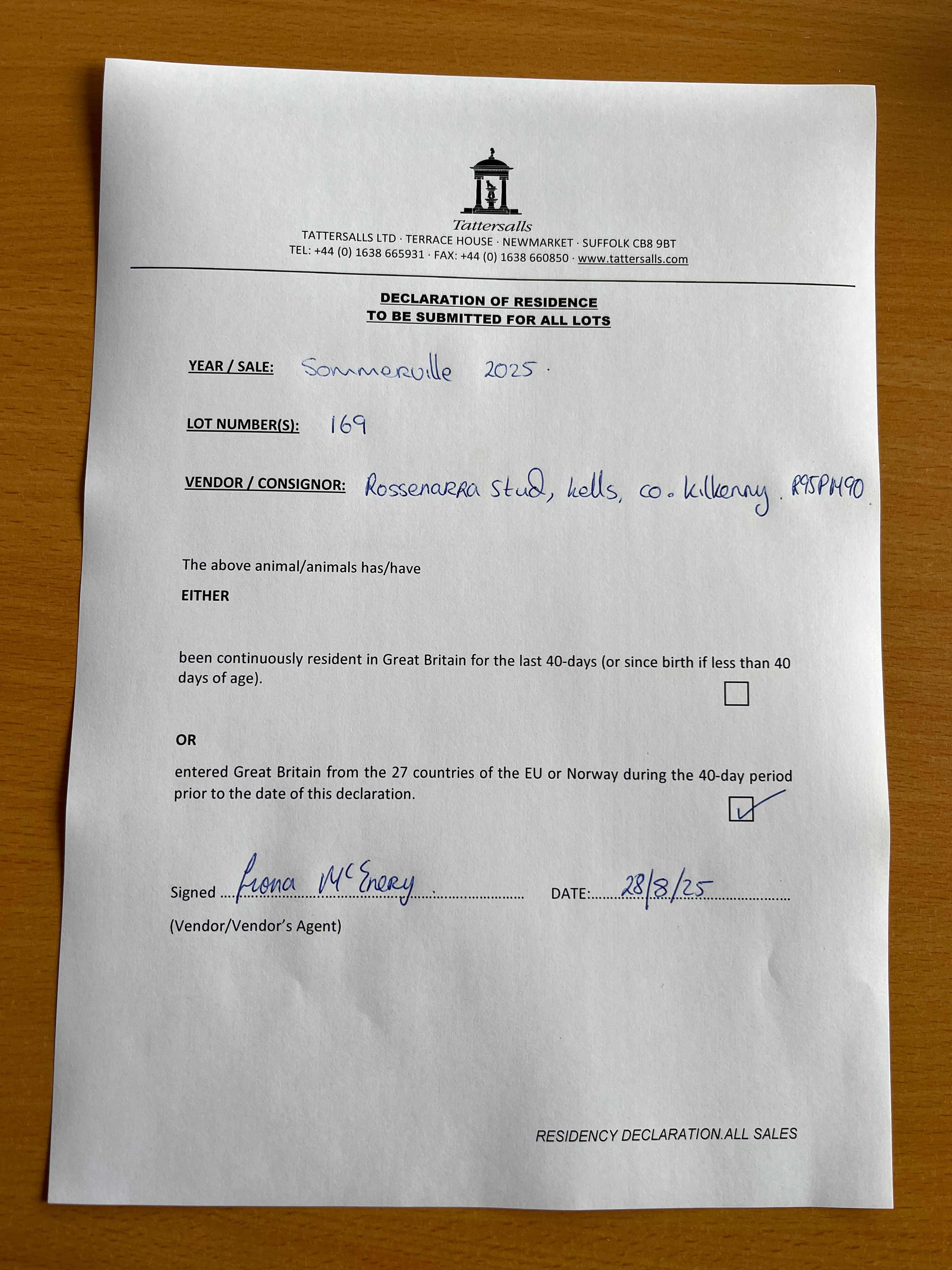 Somerville Yearling Sale 2024 lot 436 F. by Sottsass (FR) 2023, Rossenarra Stud, Ireland=>Vendor 16,000 gns