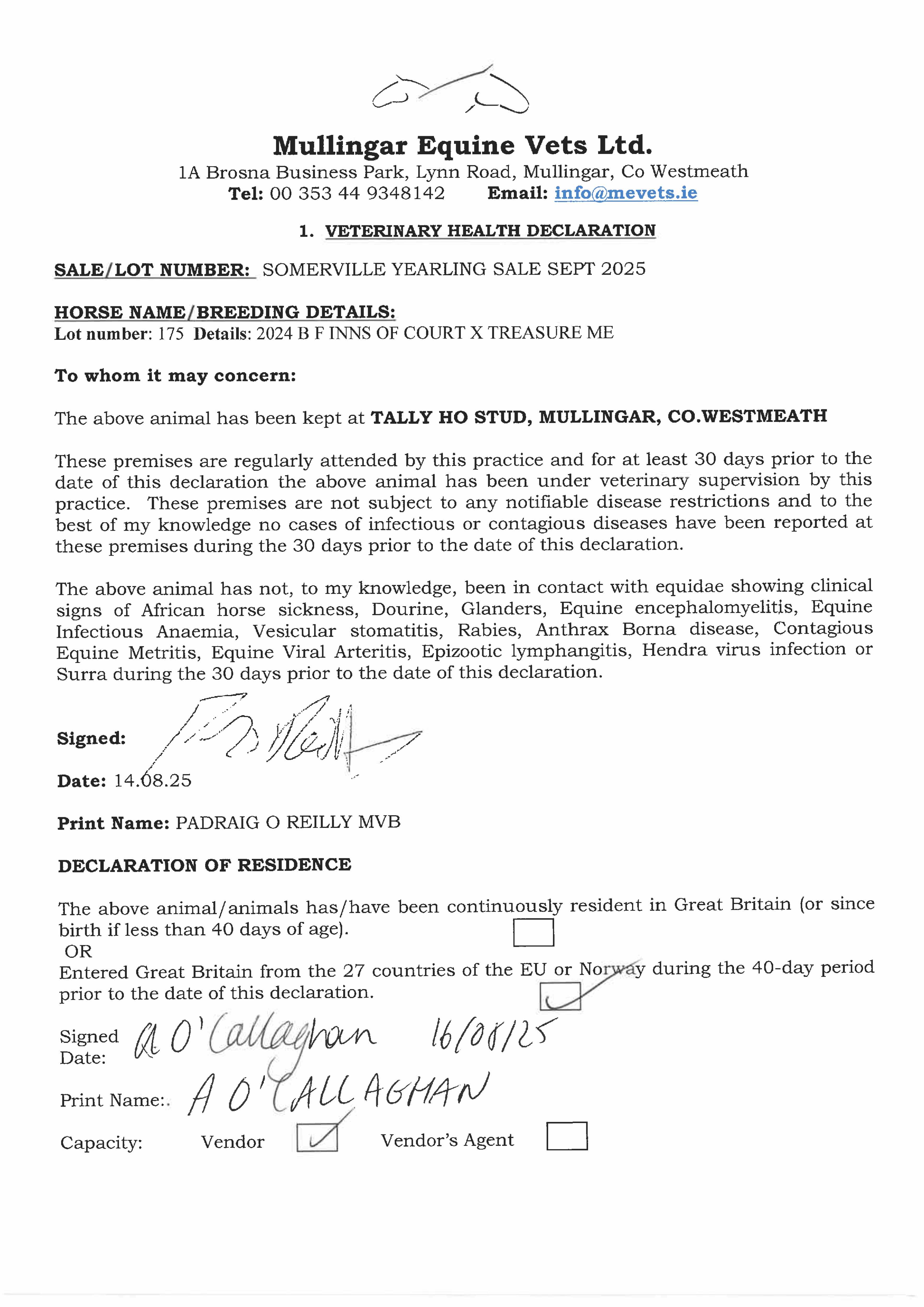 Somerville Yearling Sale 2024 lot 443 F. by Mehmas (IRE) 2023, Tally-Ho Stud, Ireland=>C Gordon Watson Bloodstock / Charlie Fellowes 26,000 gns