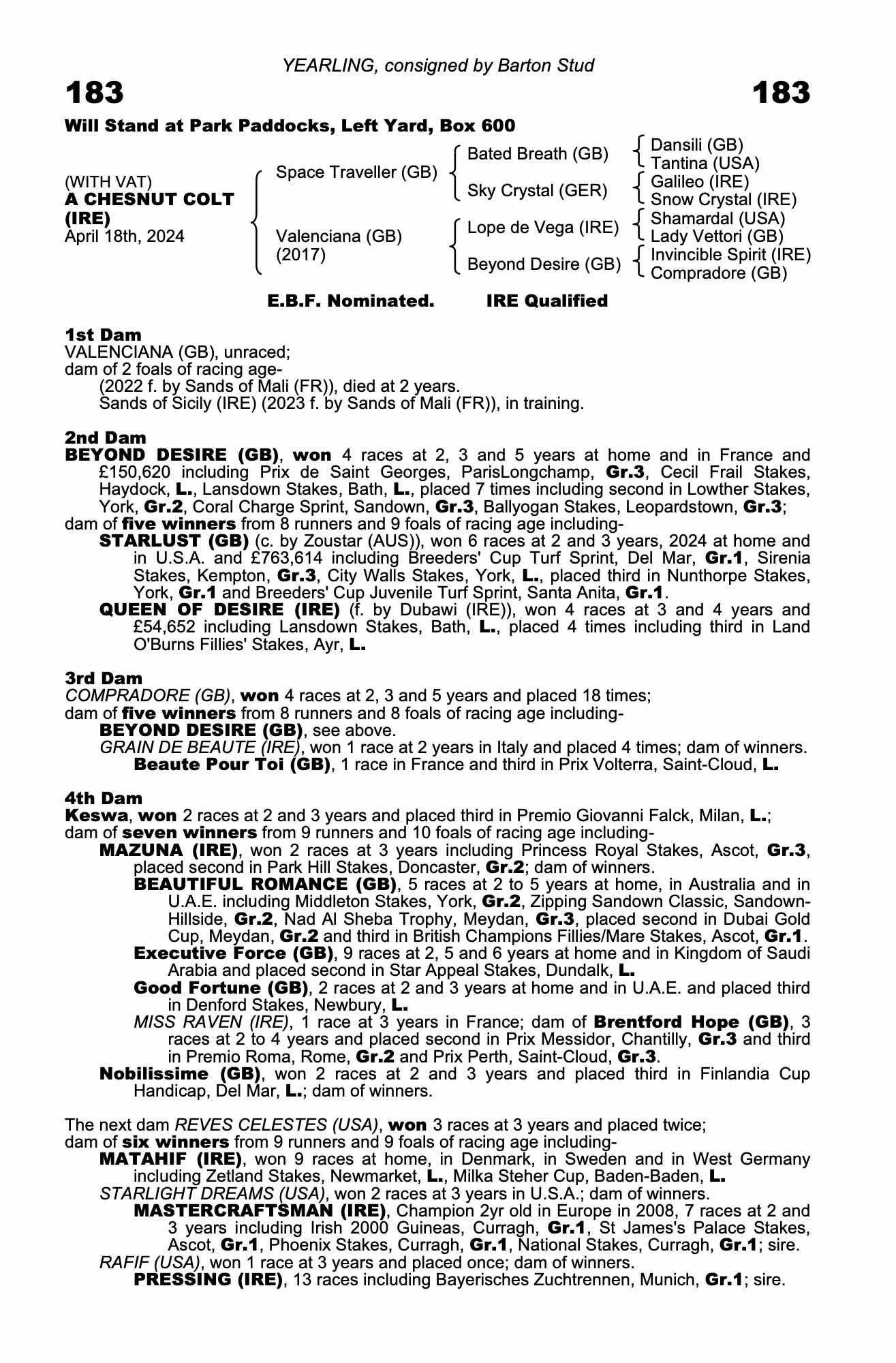 Under 2nd dam: STARGAZED (GB) (2023 f. by Zoustar (AUS)), won 1 race at 2 years, 2025.