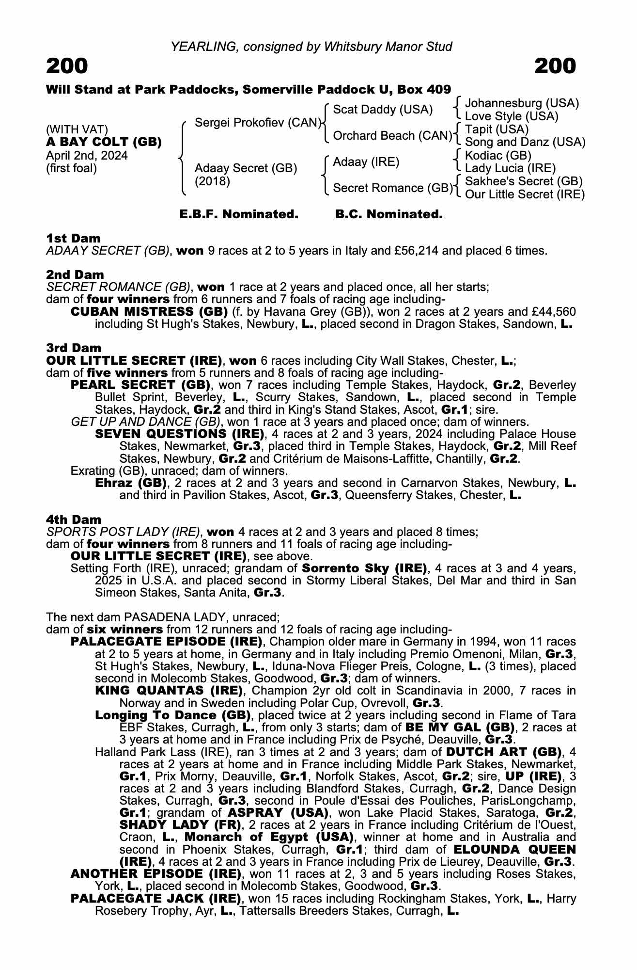 Lot 200 Sergei Prokofiev (CAN) /Adaay Secret (GB) B.C. (GB)