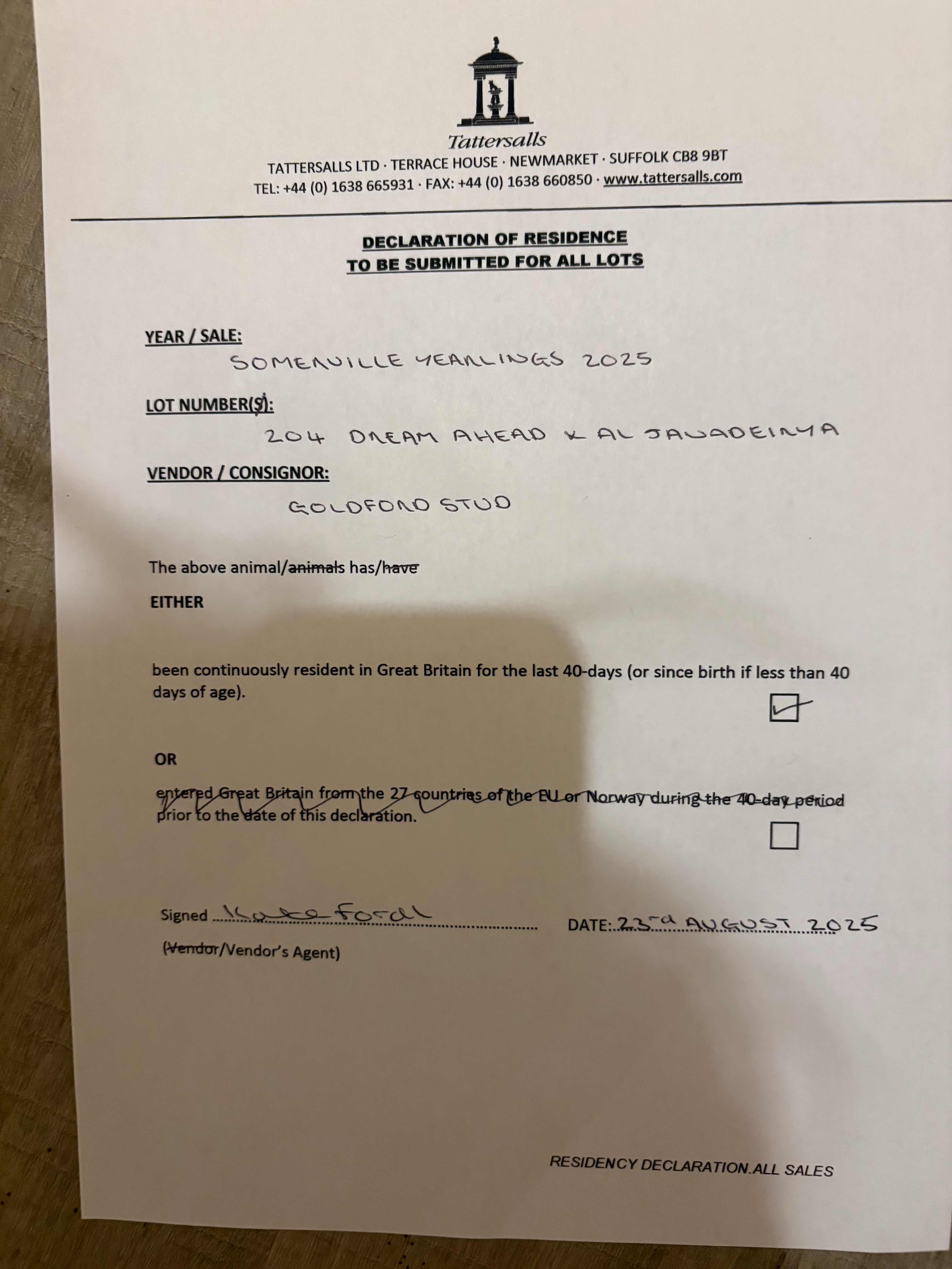 Consignor: Goldford Stud