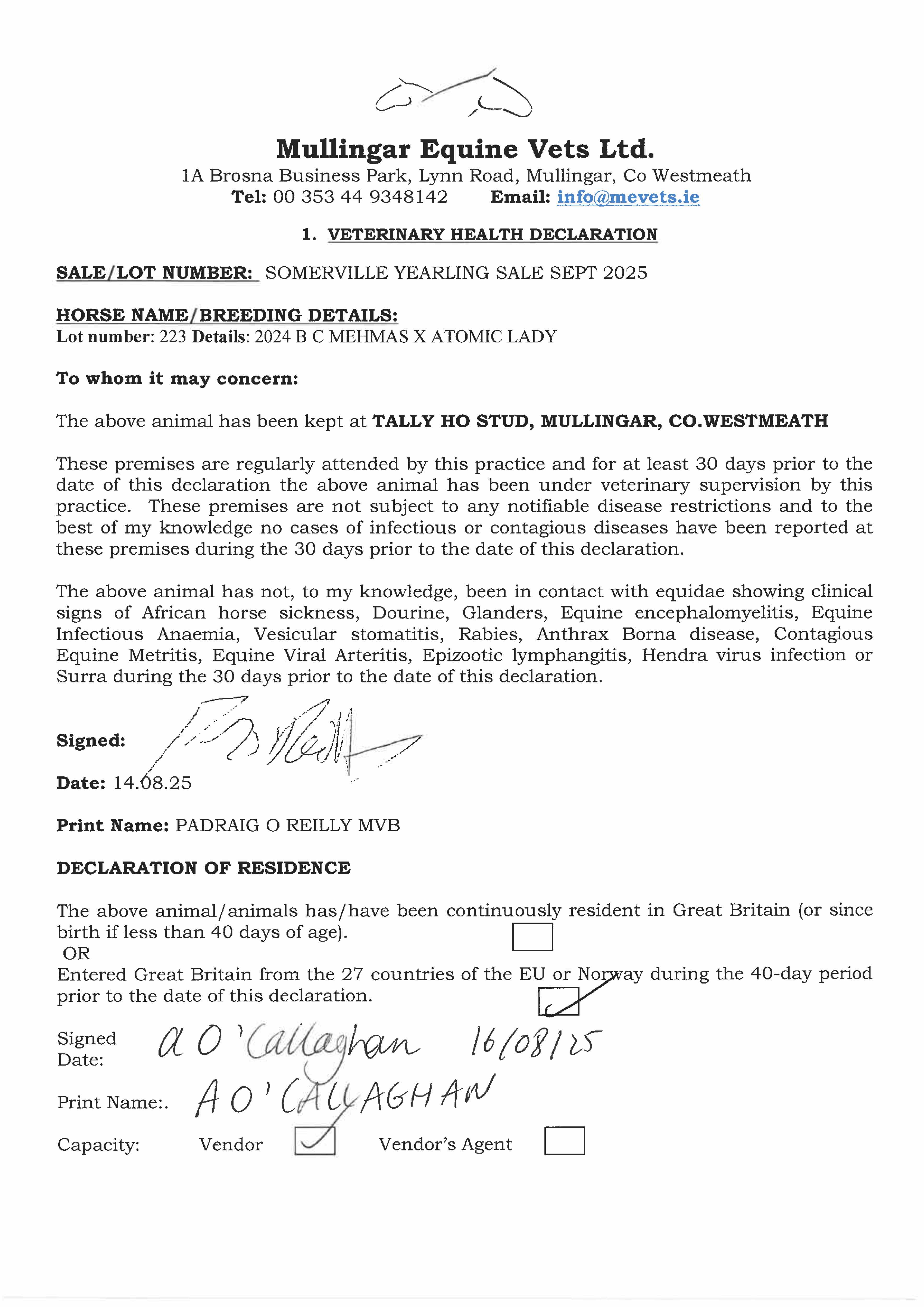 Health Certificate