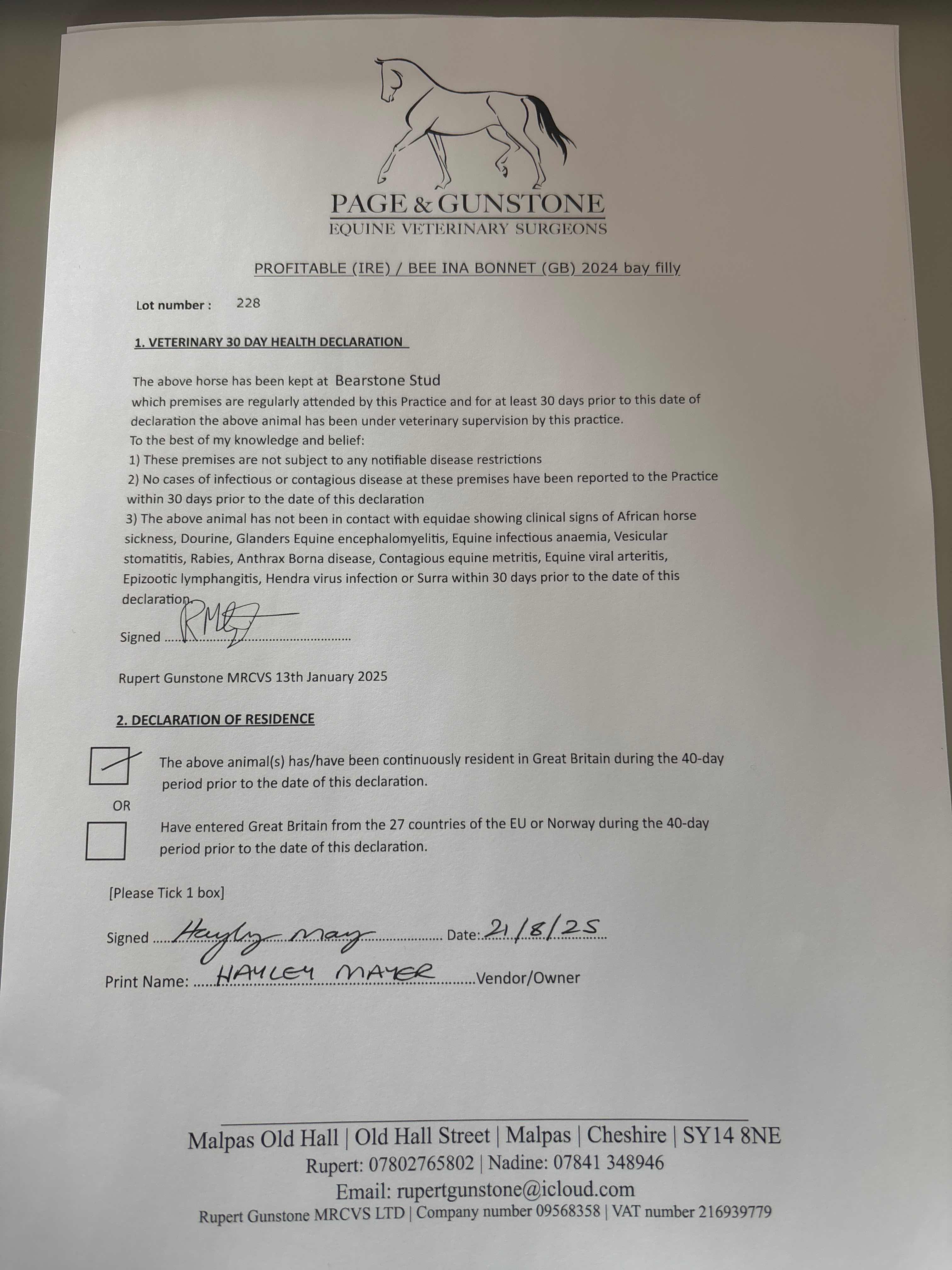 Consignor: Bearstone Stud