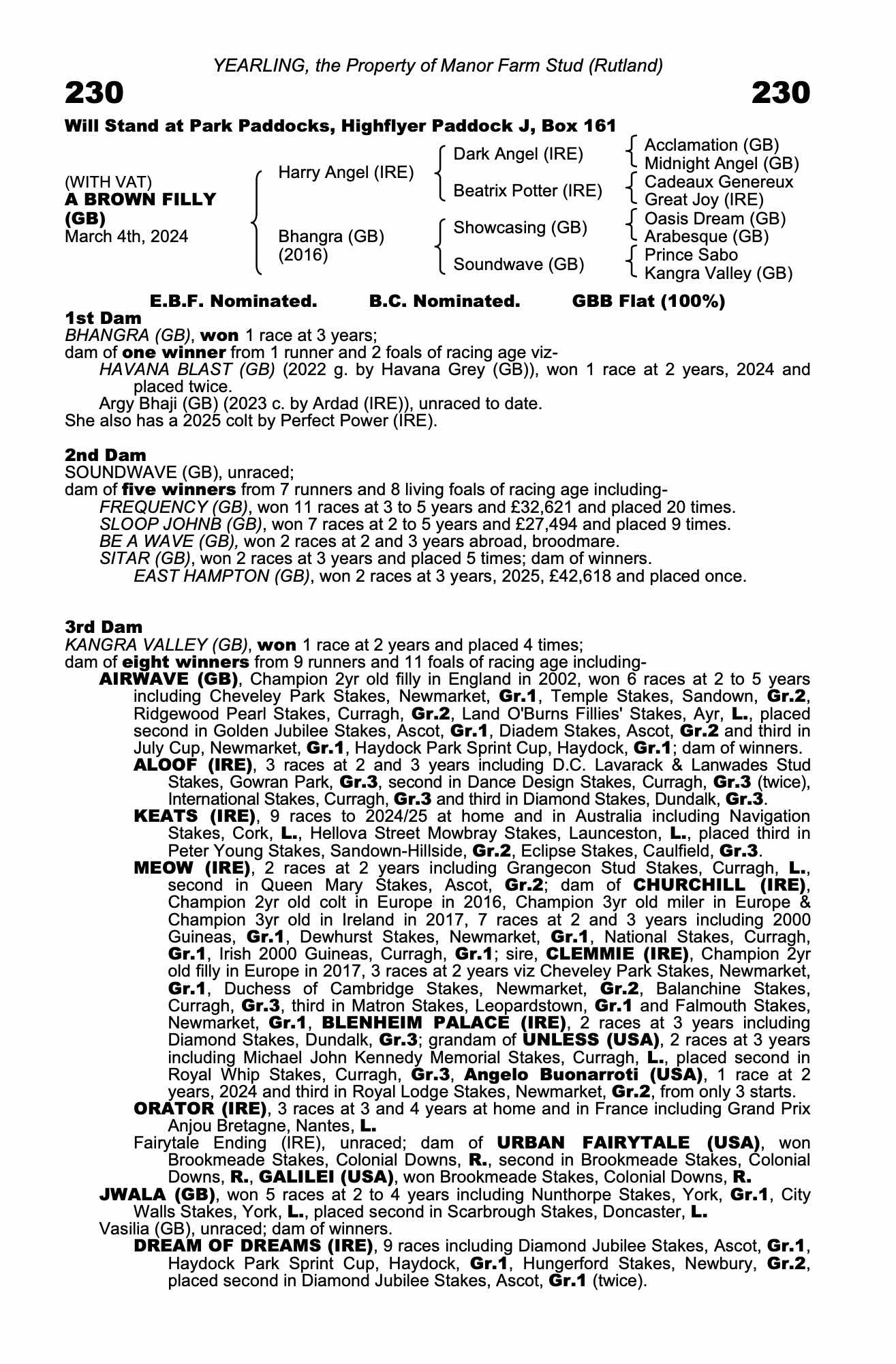 Consignor: Manor Farm Stud (Rutland)