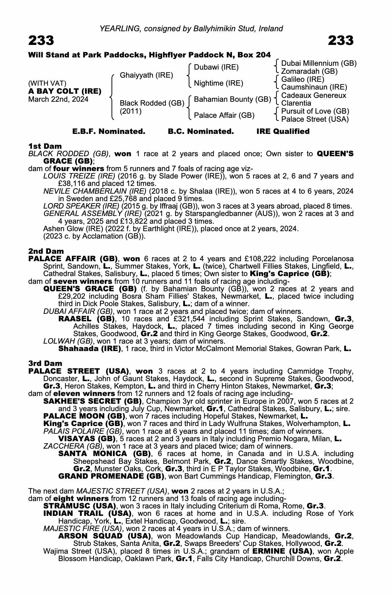 Somerville Yearling Sale 2023 lot 61 F. by Earthlight (IRE) 2022, Ballyhimikin Stud, Ireland=>Blandford Bloodstock / A Watson 35,000 gns