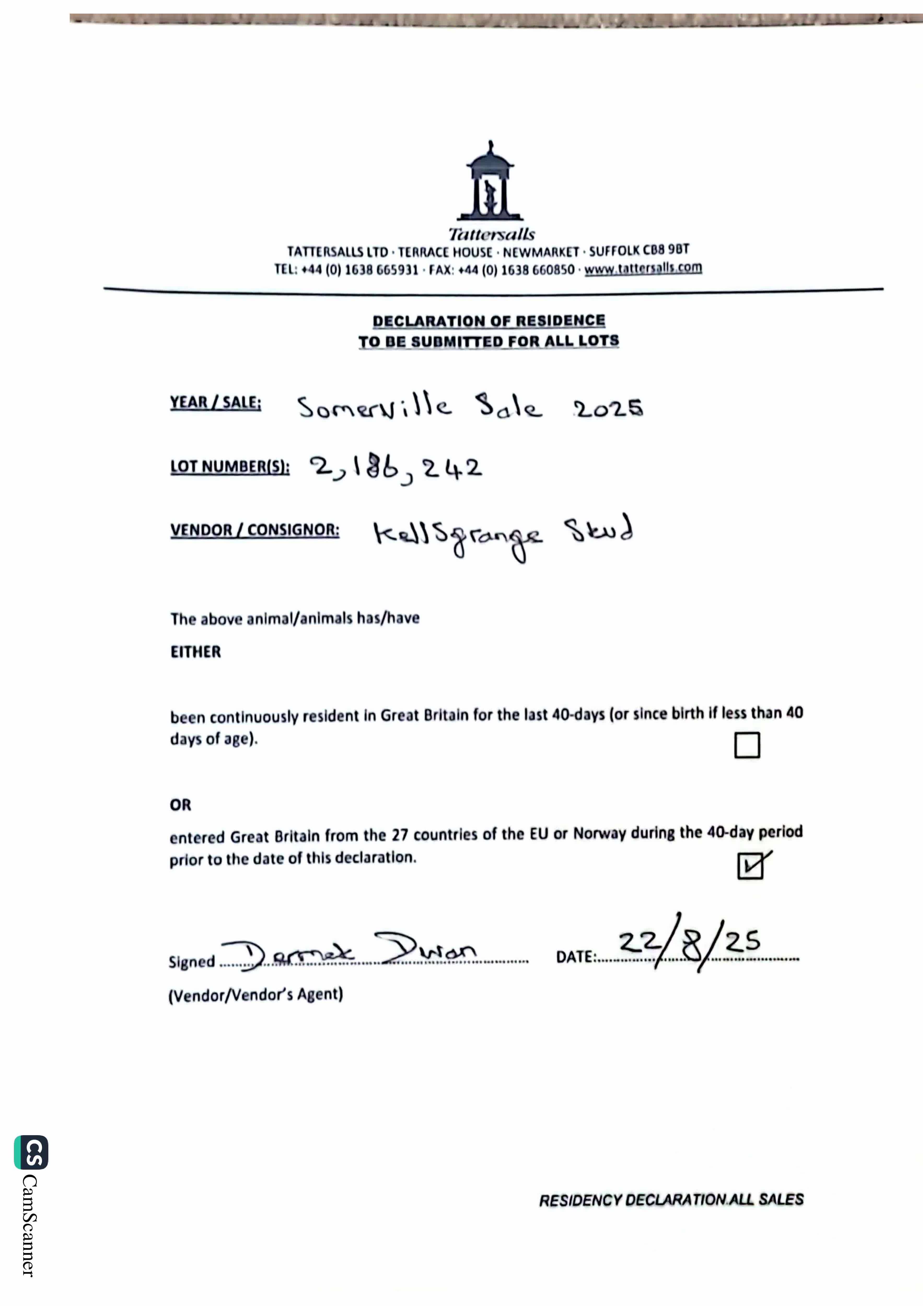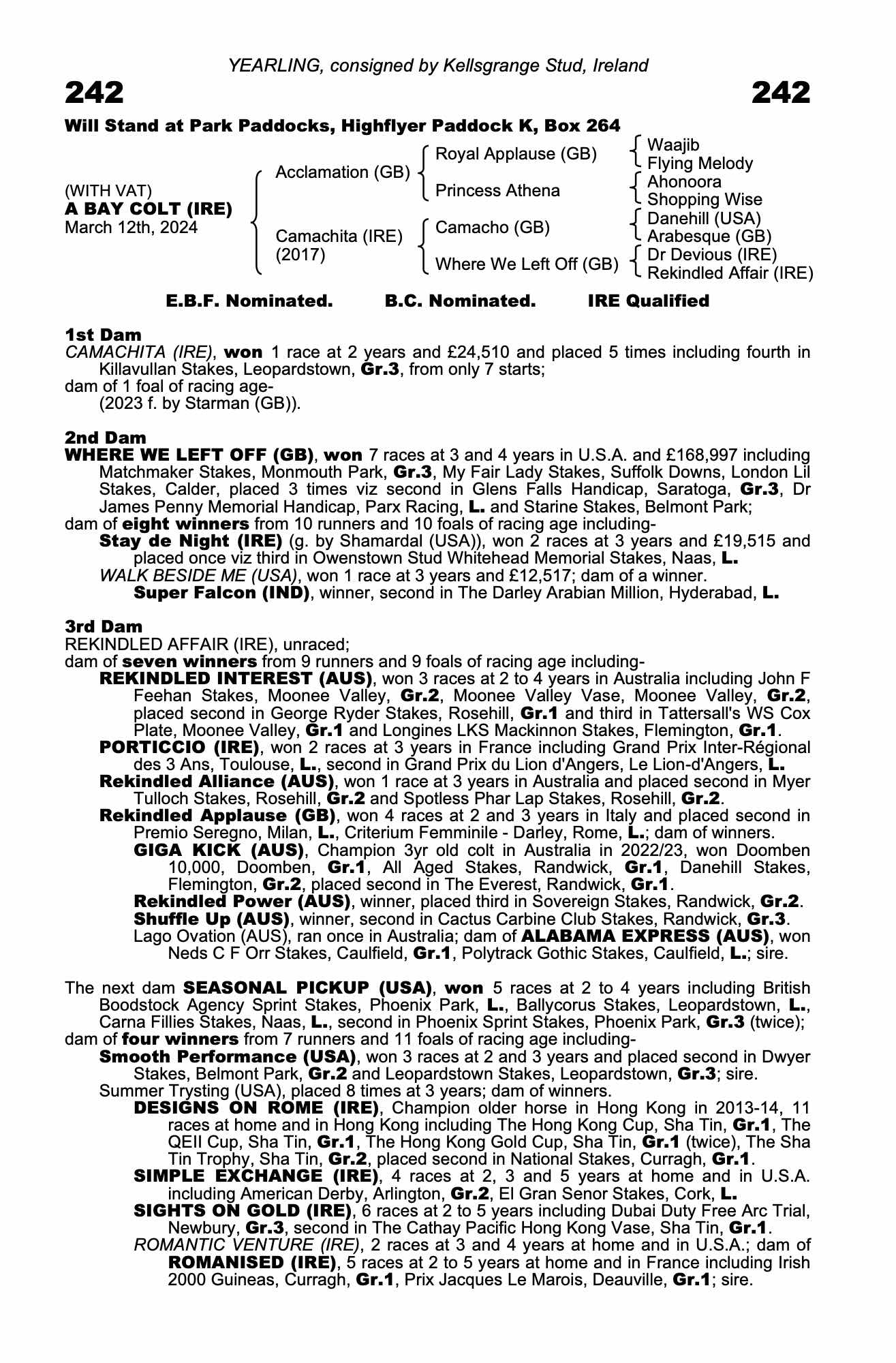 Consignor: Kellsgrange Stud, Ireland