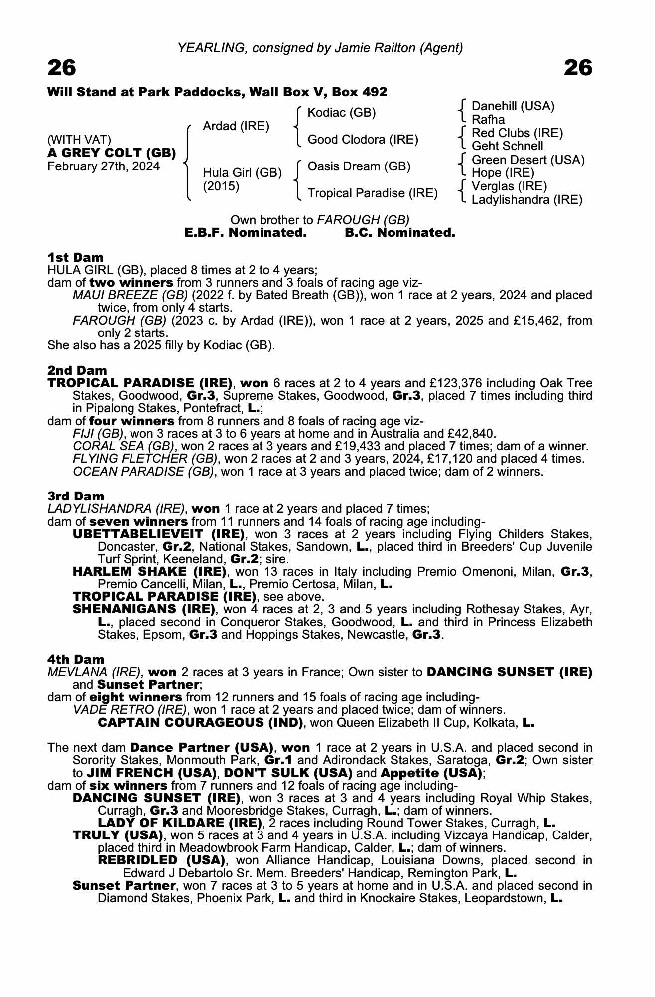 Consignor: Jamie Railton (Agent)