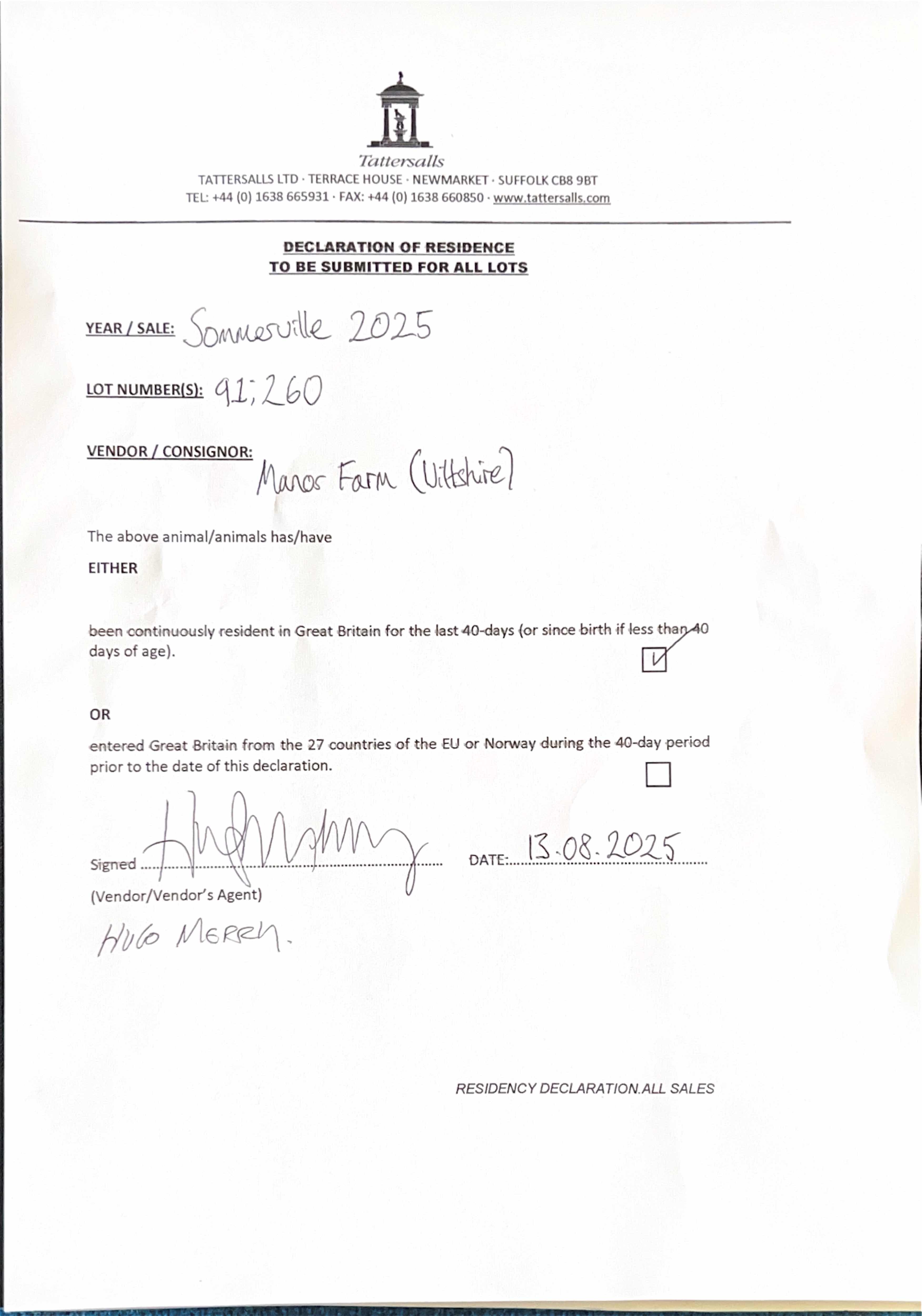 Consignor: Manor Farm (Wiltshire)