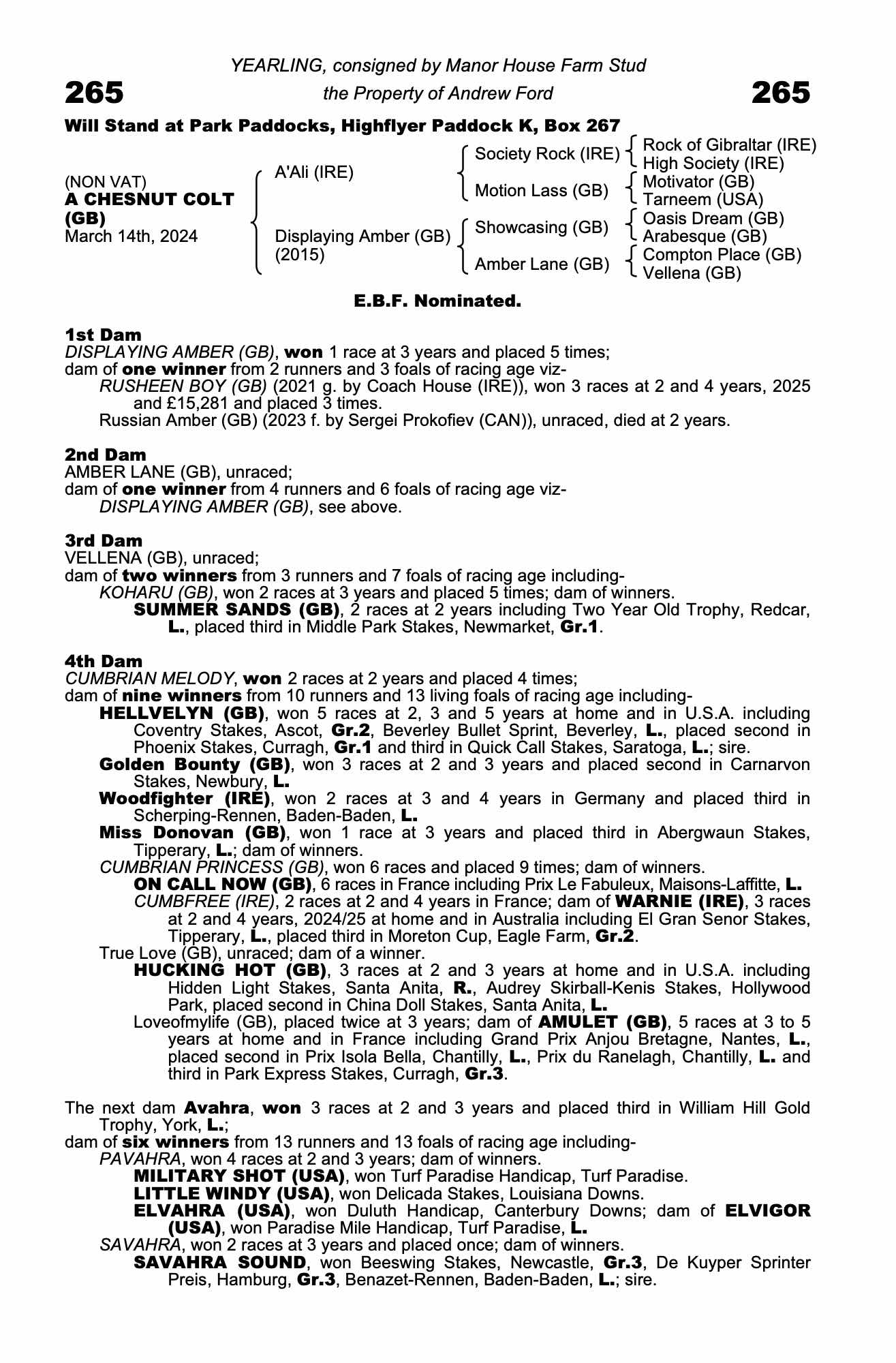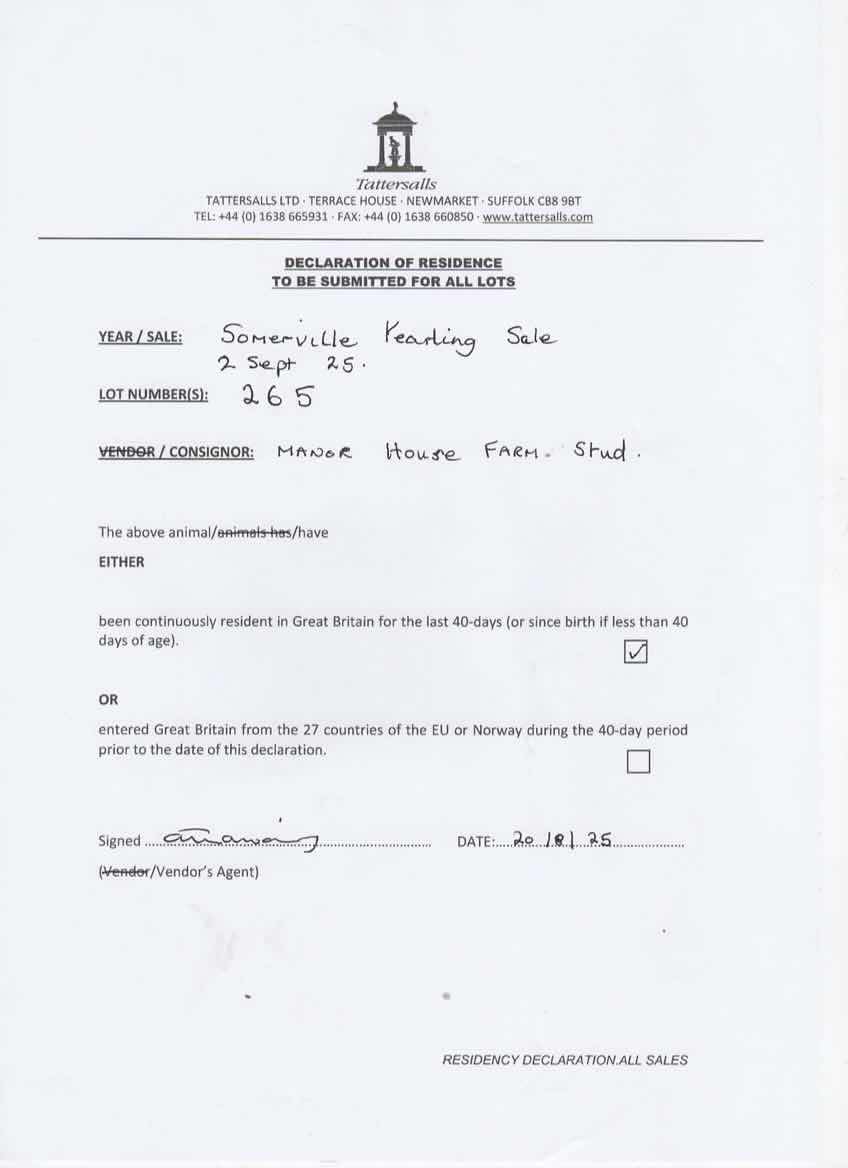Consignor: Manor House Farm Stud