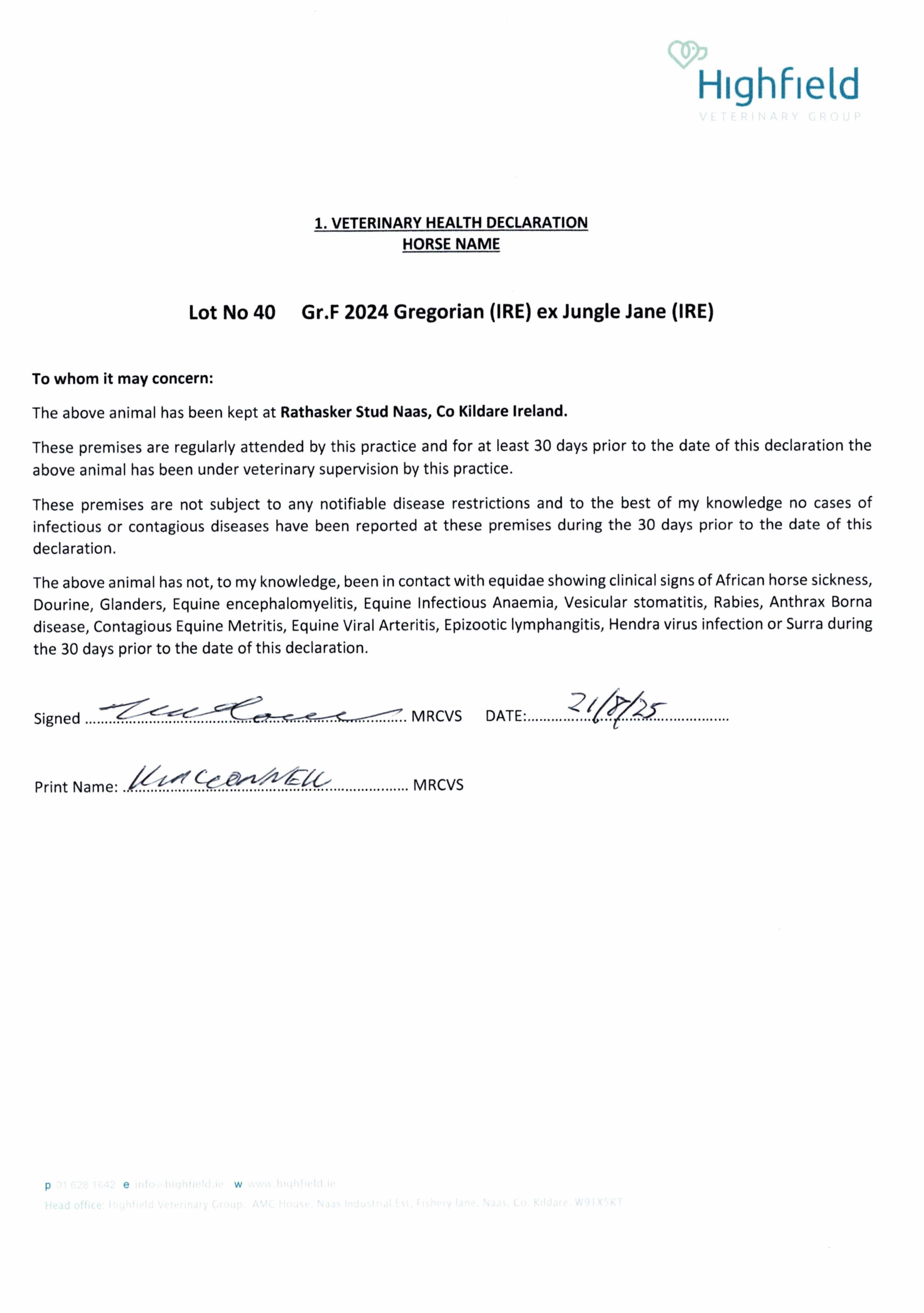 Consignor: Rathasker Stud, Ireland