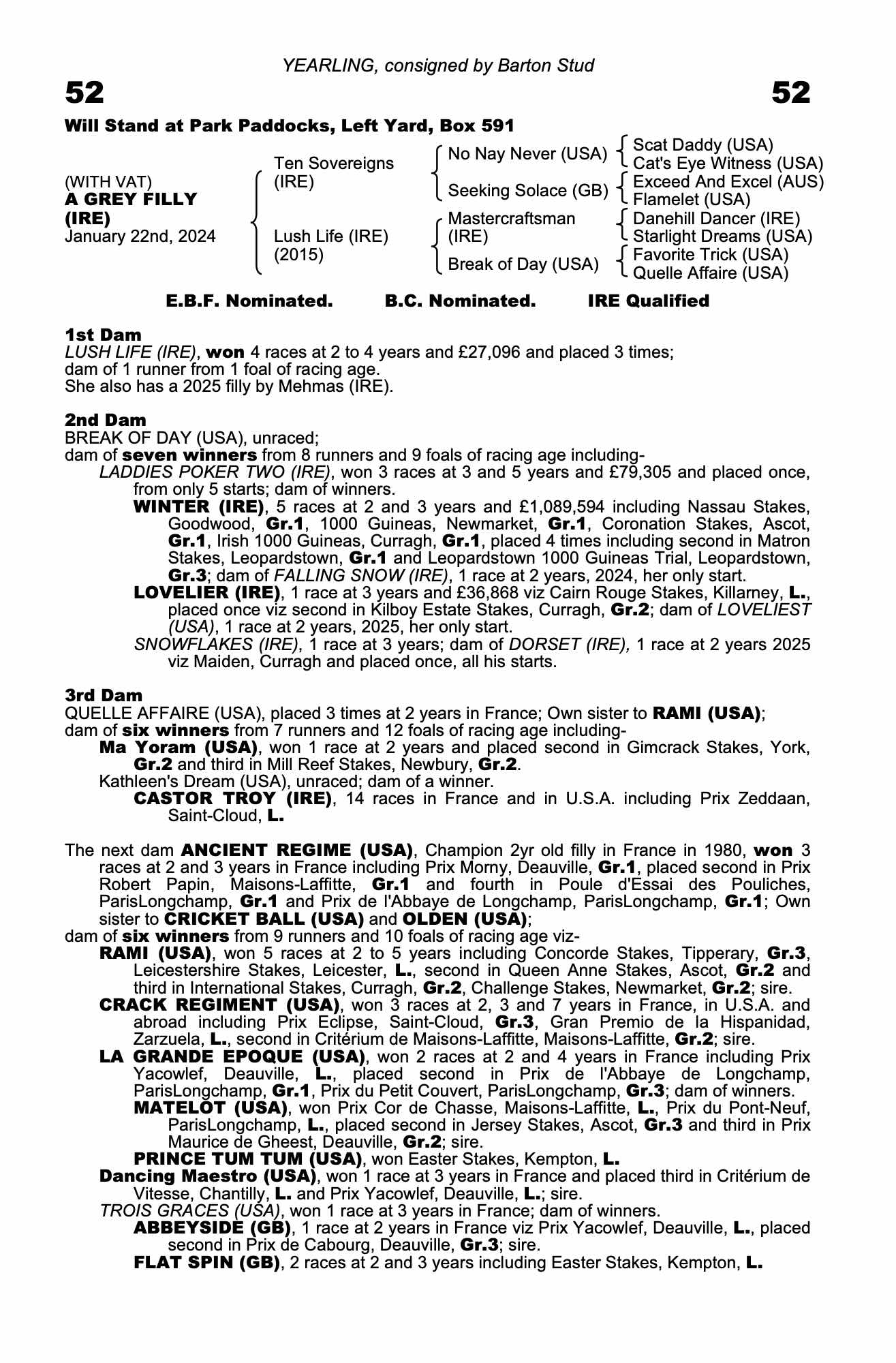 Online Sale - 19th September 2024 lot 12 Winter Life (IRE) (F. by Churchill (IRE)), Kingsley Park=>Moorland Racing 2,200 gns