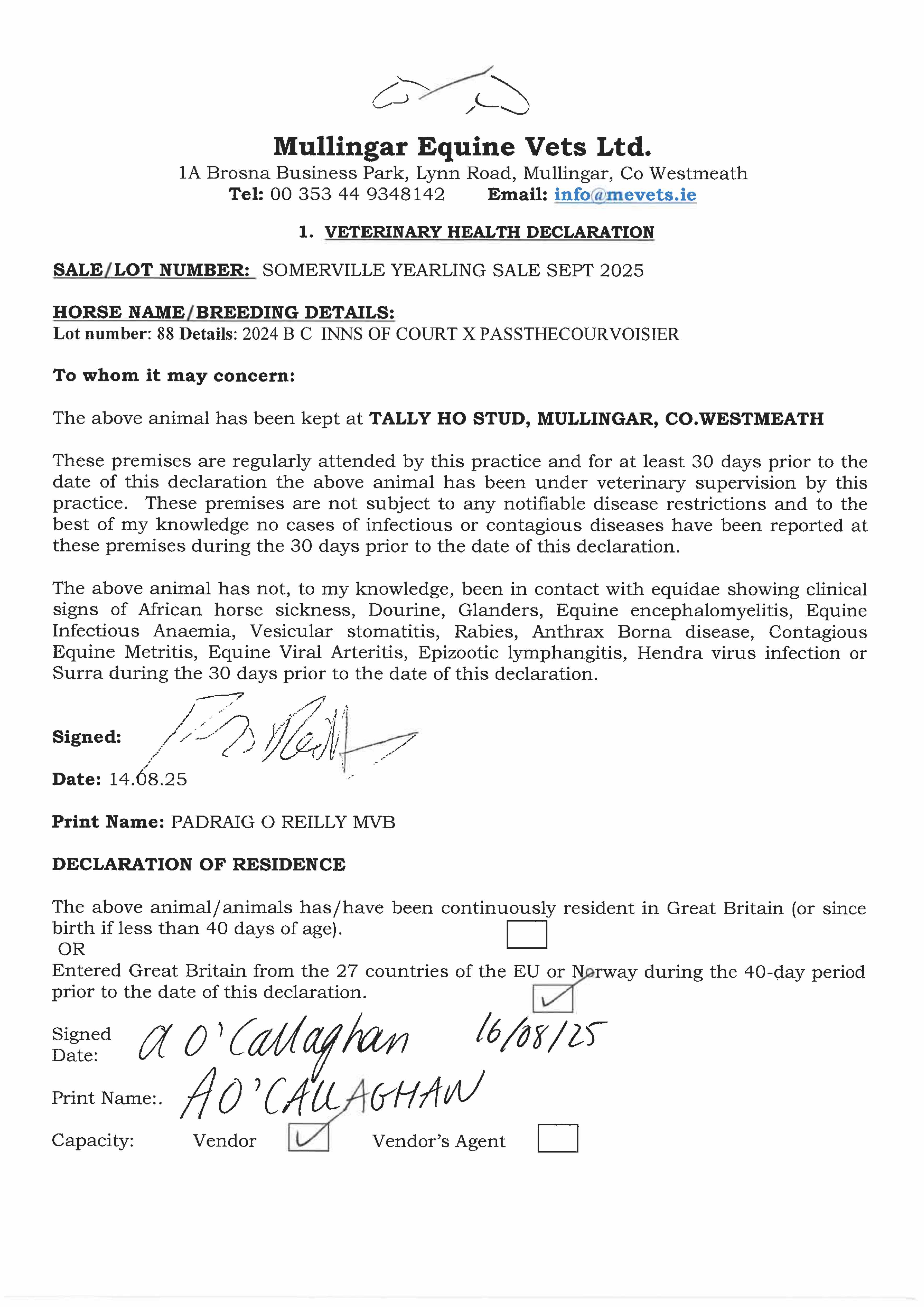 Health Certificate