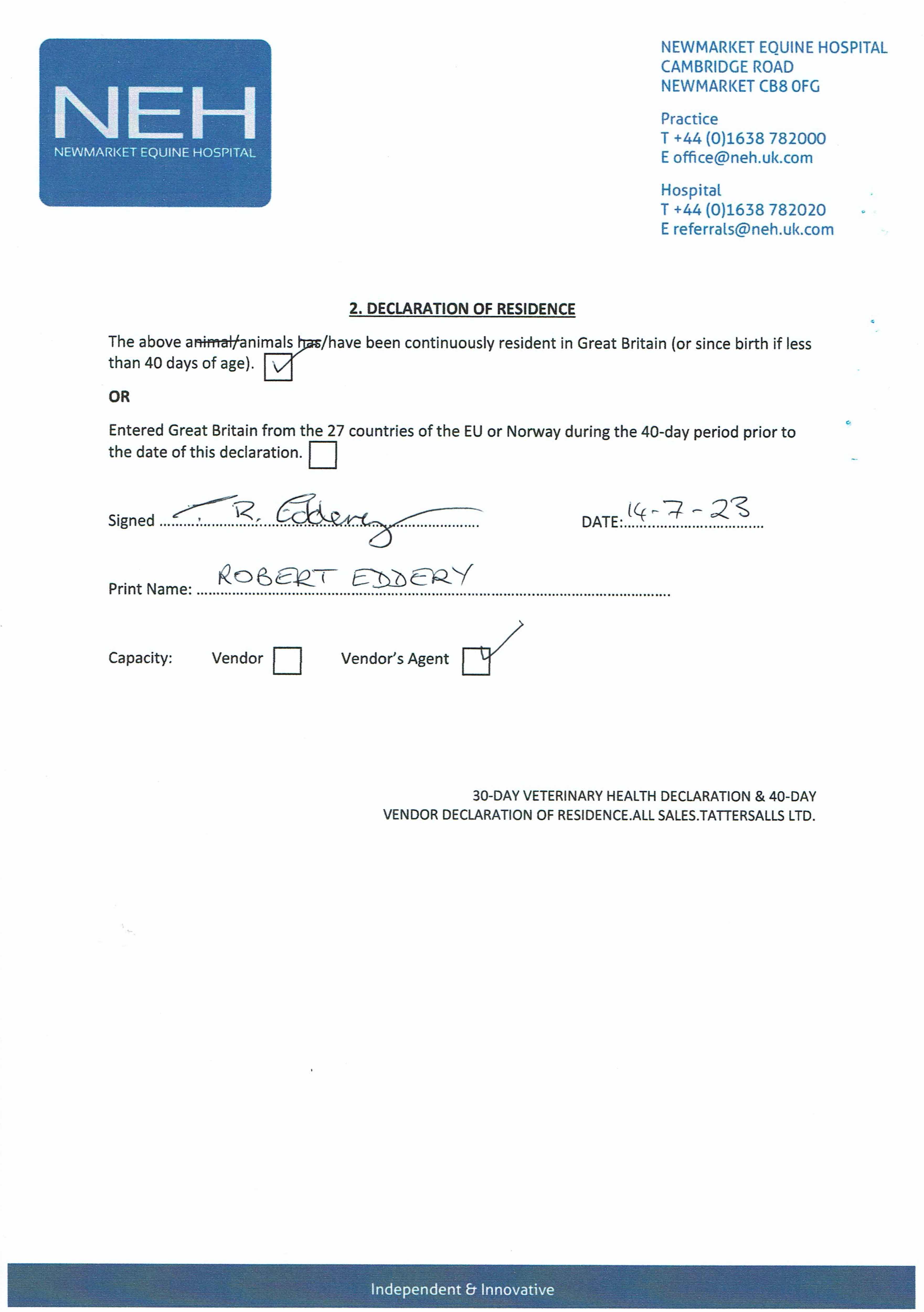 Consignor: Robert Eddery Racing Ltd.