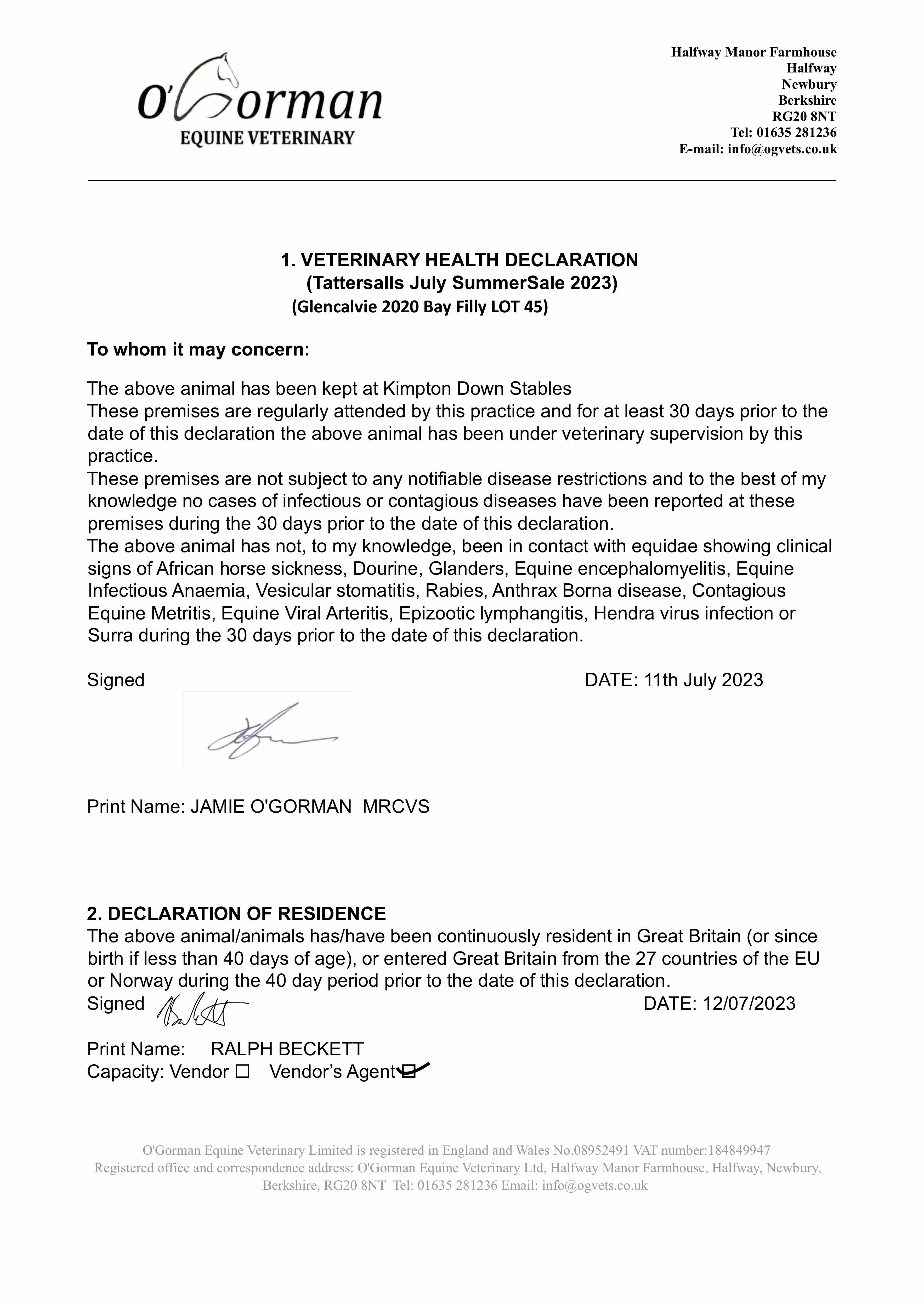 Consignor: Jamie Railton (Agent)