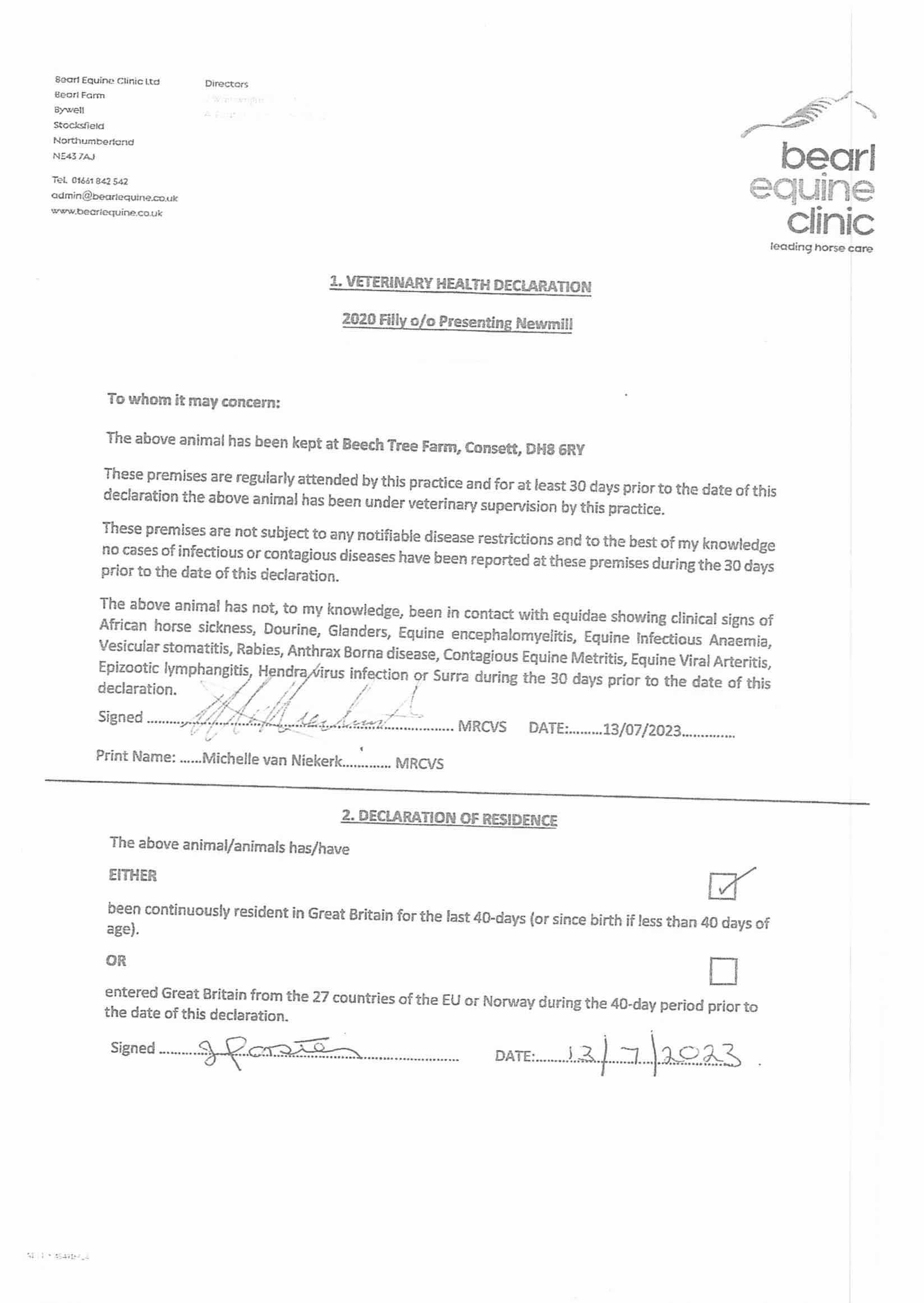 May NH Sale lot 121 F. by Getaway (GER) 2019, Derwent Dene Farm=>Monbeg Stables 5,000 gns